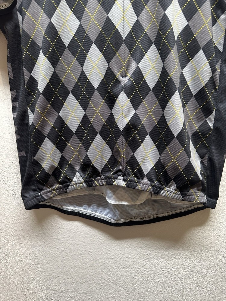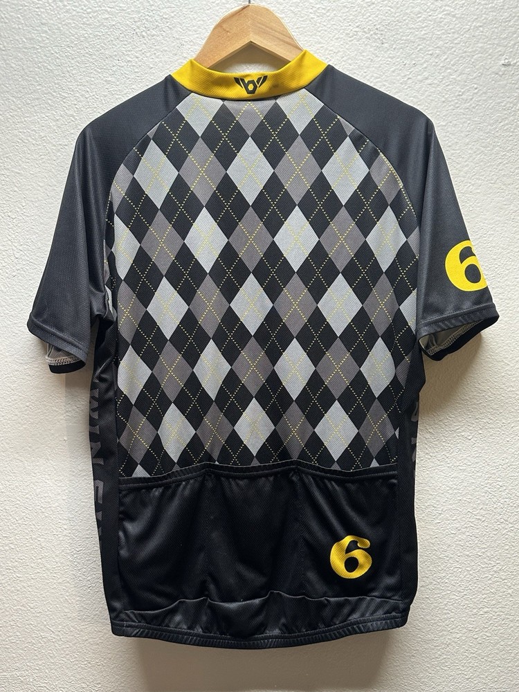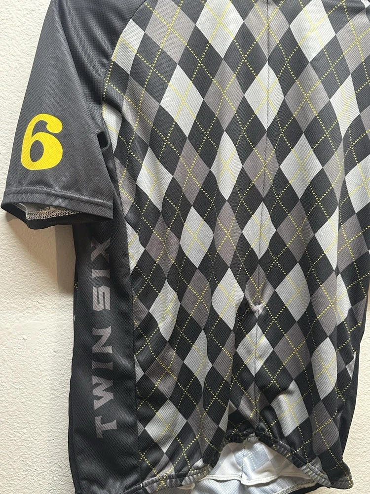 Twin Six Argyle Cycling Jersey XL Club Raglan USA Yellow Black Pockets Condition: Pre-owned. Good overall condition. Light wear consistent with use. No major flaws noted. Details: Twin Six Club Raglan cycling jersey Argyle print front panel Black & gray with yellow accents Yellow collar Number 6 graphic on sleeve Rear storage pockets Made in USA Breathable performance fabric Measurements (Laid Flat): Pit to Pit: 23” Length: 24” Sleeve: 9” Keywords: Twin Six jersey, cycling top, road bike jersey, club raglan, argyle cycling, men’s XL cycling, USA made cycling jersey, black yellow bike shirt