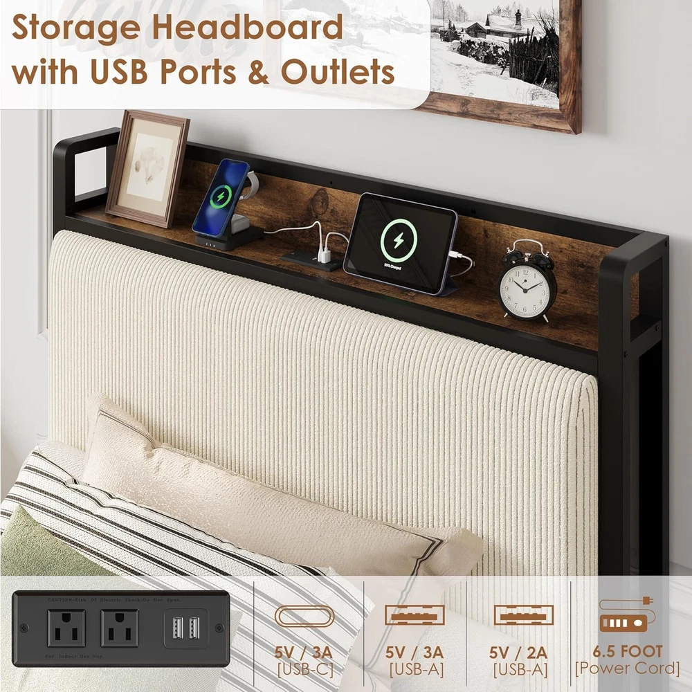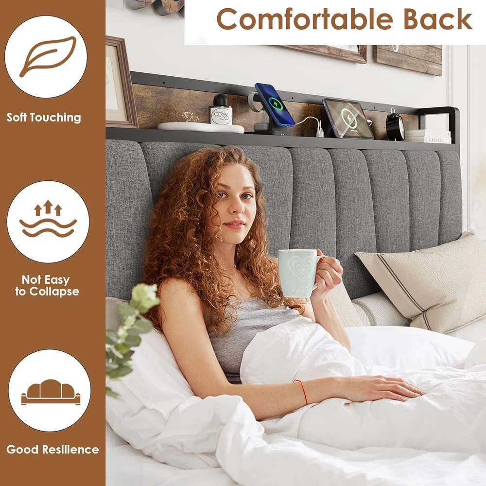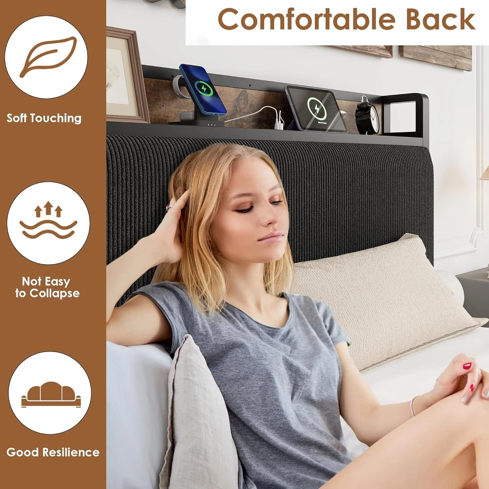 Product description 【Storage Headboard with Charging Station】This bed frame with storage headboard allows you to easily store small items such as phones, glasses and books. It is equipped with 2 USB ports and 1 Type-C port, providing a maximum of 5v/3a for fast charging efficiency. The linen upholstered headboard not only adds a stylish touch to your room, but also allows you to comfortably lean back to read books or use your phone. 【Twin Size Bed Frame with 2 Storage Drawers】This bed frame comes with 2 spacious storage drawers with smooth wheels, perfect for storing clothes or bedding. The screw lock prevents the drawers from sliding out. Additionally, the extra 10.6-inch space under the bed can be used to store shoes, boxes, or suitcases, making the most of the under bed space. 【Ideal for Placement Against the Wall】You have the flexibility to choose the placement of the two drawers under the bed. Placing both drawers on one side allows the other side to be placed against the wall, avoiding wasted drawer space. This feature is particularly suitable for families with kids or limited room space, as placing the bed against the wall prevents children from falling off the bed, providing extra safety. 【More Space for Nightstand】If you have a need for nightstand, you can choose to place a drawer on each side of the foot of the bed, as placing drawers at the head of the bed may be obstructed by nightstand. If you have these requirements above, our bed frame is the perfect choice for you. 【Sturdy Structure & Noise-Free】This bed frame is constructed with 12 high-quality metal slats and 8 heavy-duty support legs, ensuring both comfort and stability. It can withstand a maximum weight capacity of 800 pounds. With no need for a box spring and the use of noise-reducing cotton, you can enjoy a quiet and comfortable sleeping environment. 【Easy Assembly】All the parts and tools of our platform bed frame are marked out in the manual. Clear assembly instruction helps people with zero assembly experience. It only takes around 60 minutes to complete the installation. Any problems with this bed frame, please feel free to contact us, we will provide you with 24 hours professional customer service. Twin/Twin-XL Size Bed Frame with 2 Storage Drawers Twin Size Bed Frame with 2 Storage Drawers and Charging Station Charging Station with USB Ports & Outlets Soft Linen Backrest The comfortable Linen backrest has a soft fexture, is resistant to sinking, and offers great bounce. The bed has stable frame with noise-free design & easy to install. Functions 1 2 Large Drawers 2 Stable Frame 3 Under-Bed Storage A Gift for Kids Specification Size Option TWIN/TWIN-XL/FULL/QUEEN/KING Fabric Linen Drawers 2 (Can be placed anywhere) Charging Station Yes Noise Free Yes Easy to Install Yes All Day Customer Serivice Yes Color Yes GAOMON High Quality Bed Frames Customer Reviews 4.0 out of 5 stars 1 — 4.0 out of 5 stars 2 4.8 out of 5 stars 23 Price $99.99 $ 99 . 99 $221.07 $ 221 . 07 — $169.99 $ 169 . 99 Color Pink / White White / Grey White / Grey Pink / White / Blue Available Size Twin Full / Queen / King Full / Queen / King Twin/Twin XL/Full Soft Headboard Charging Station Storage Drawer Easy to Assemble Noise Free Weight Capacity 1000 lbs 1000 lbs 1000 lbs 1000 lbs From the brand Gaomon is committed to creating a comfortable residence for customers that meets their style and needs space. We pursue excellent craftsmanship quality and fashionable design, integrating them with modern aesthetics to give customers diverse choices and unparalleled value and satisfaction. GaoMon hopes to become the first choice channel for customers to find ideal furniture while pursuing a high-quality life road brand. Farmhouse Cabinet Bed Frame Makeup Vanity Farmhouse Console Table Bathroom Storage Series What is our brand value? our mission is to improve people's living spaces and improve their overall quality of life. What is the direction of our efforts? GAOMON is committed to creating a comfortable living space for customers that suits their personal style and needs. What is our pursuit? We pursue excellent craftsmanship quality and fashionable design, integrating them with modern aesthetics to give customers diverse choices and unparalleled value and satisfaction.