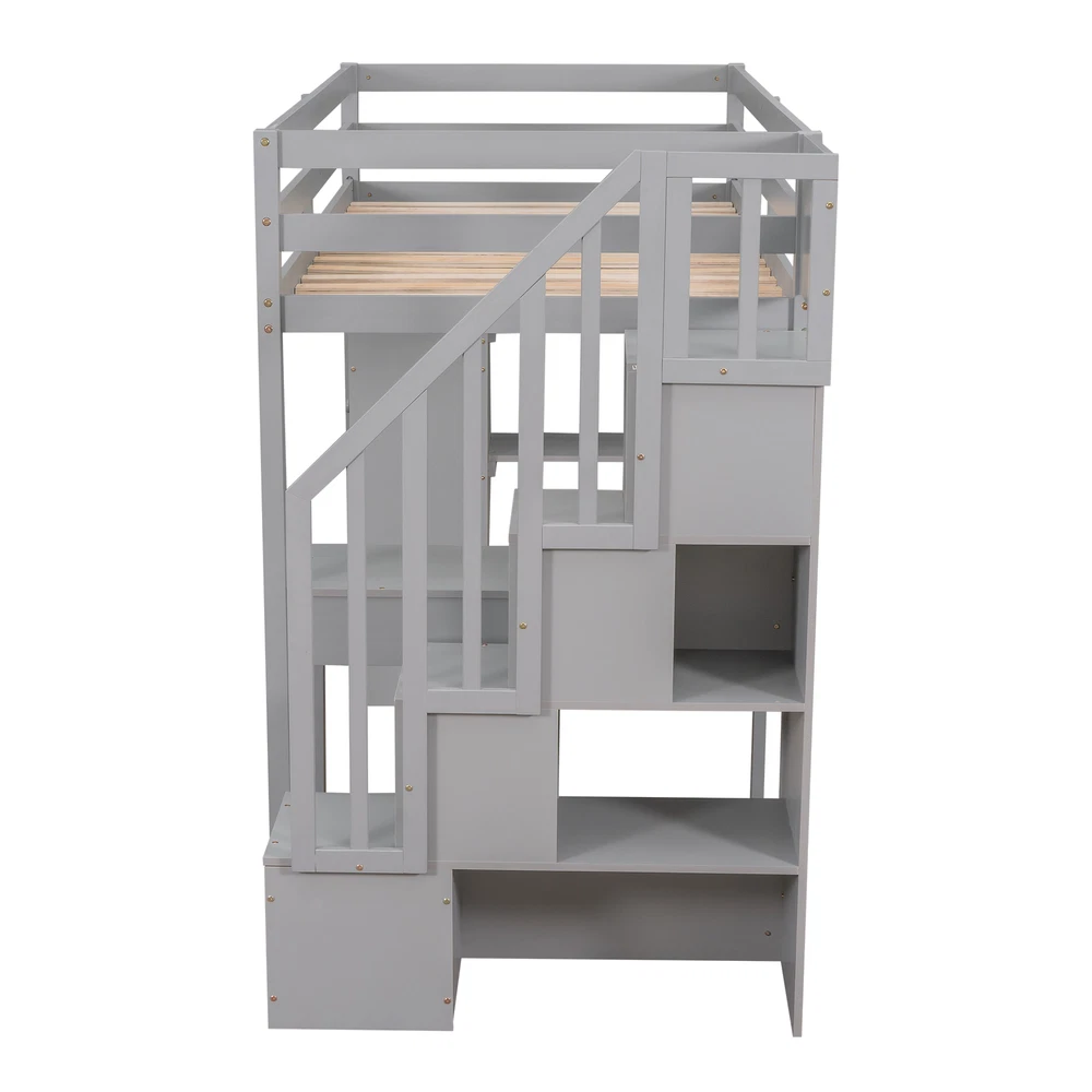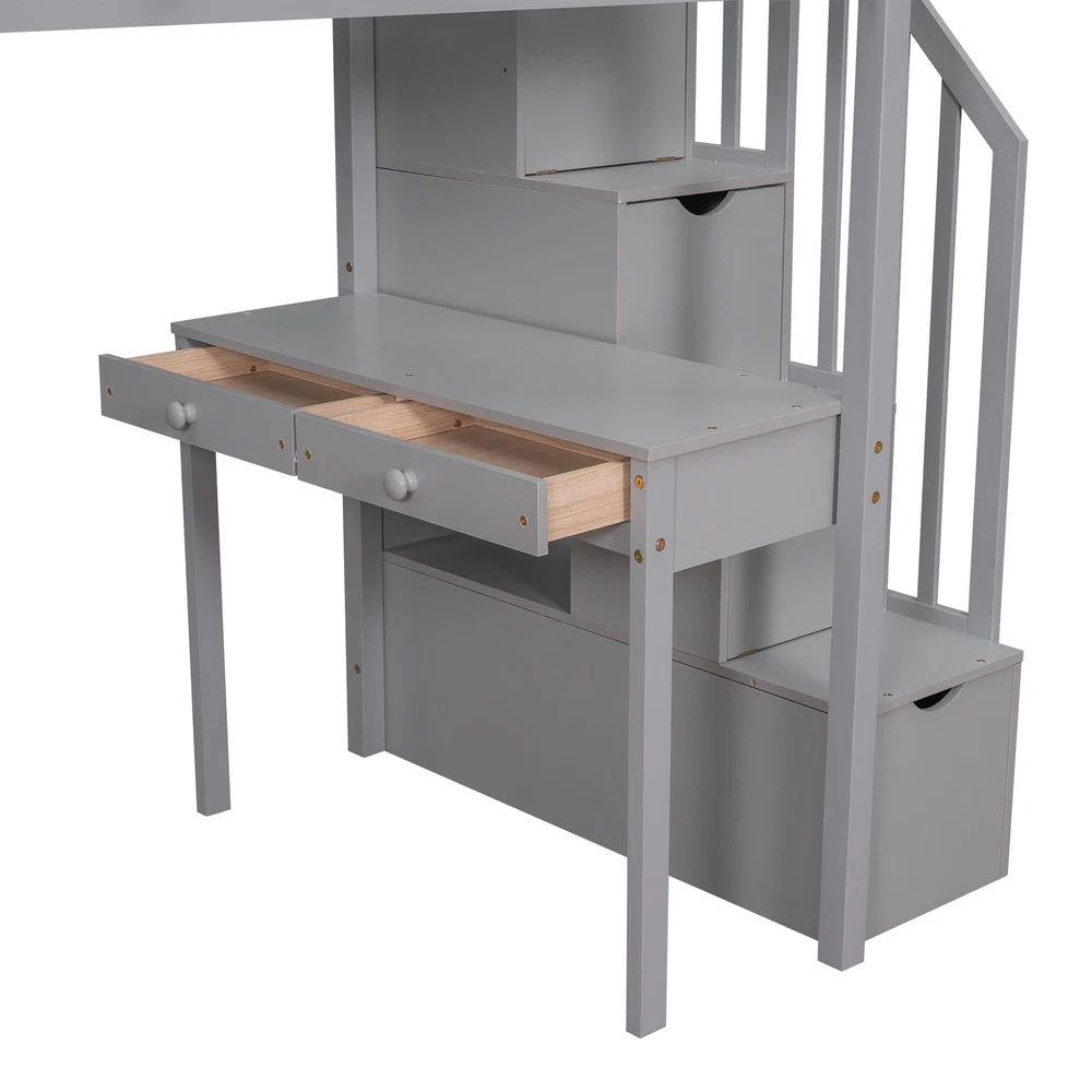 Twin Wooden Loft Bed with Storage Drawers, Desk & Stairs for Space-Saving Kids Room