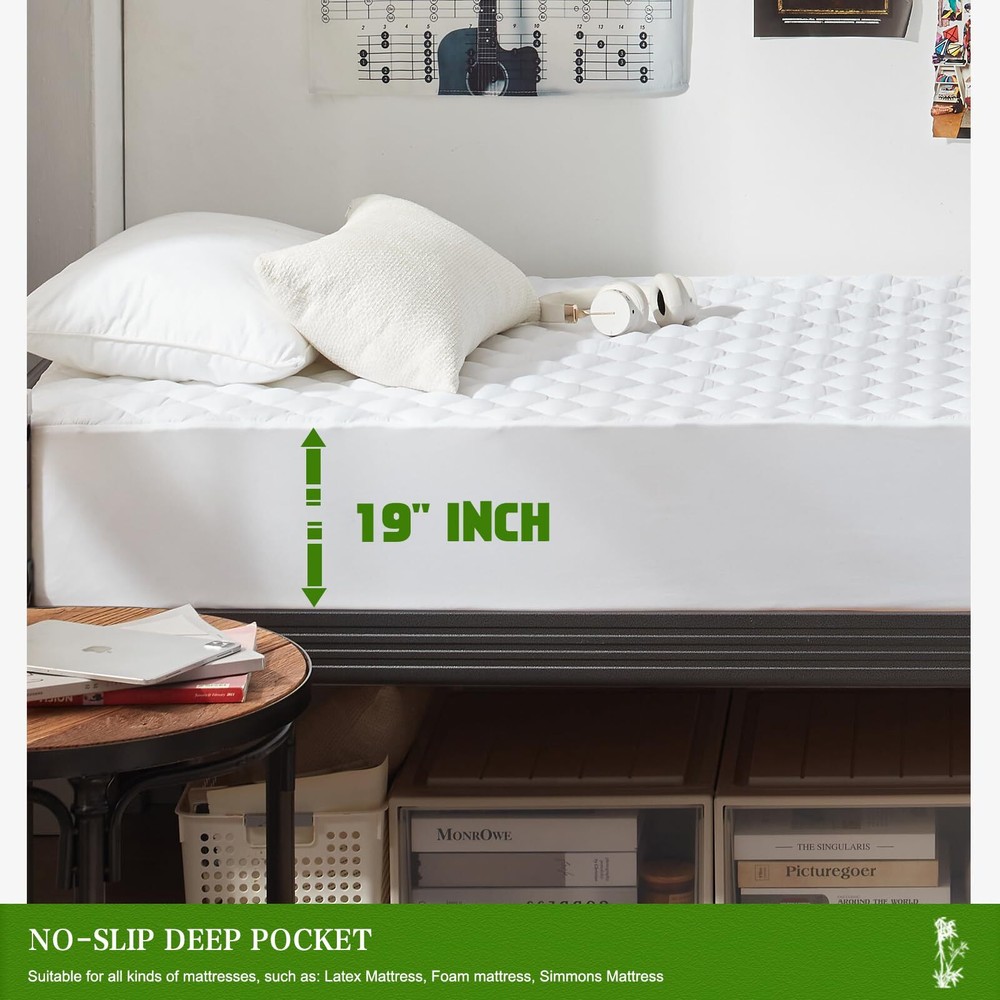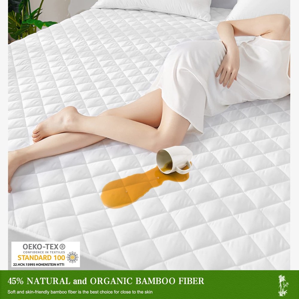 💦 【Skin-friendly MATTRESS PAD】: twin xl waterproof mattress pad is made of 45% Rayon Made from , which has a natural countless oval meshes, quickly absorbs heat and moisture, so provides you with a cool and dry sleep environment. With waterproof twin xl bed mattress pad, you can say goodbye to sweaty nights! 💦 【100% WATERPROOF MATTRESS PAD】: Our waterproof twin xl mattress pad cover has upgraded 100% water resistant TPU membrane, protecting your mattress from pee, perspiration, urine, and accidental spills. Our waterproof twin xl fitted mattress pad is exclusively designed for who are in the process of potty training. No more frustration about the accidents caused by or pets. 💦 【SOFT & BREATHABLE MATTRESS PROTECTOR】: Waterproof mattress protector twin xl college dorm is surfaced with high-quality Rayon Made from , which is more breathable and skin-friendly than other fabrics. The soft filling makes our twin xl waterproof mattress protector add extra softness to your mattress without adding heat. 💦 【DEEP POCKET MATTRESS COVER】: Twin xl waterproof mattress cover protects all sides of your pricy mattress from all kinds of fluids, keeping the mattress fixed in place all the time. Twin xl deep pocket mattress cover (39"x80") fits the mattress with depth of 6"-19". Feel free to roll on bed and no worry about any noise with twin xl mattress cover waterproof! 💦 【MACHINE WASHABLE Waterproof MATTRESS Cover】: Durable and wear-resistant fabric makes our twin xl bed mattress cover waterproof washable is still waterproof after hundreds of washes and keep your mattress brand new. PLEASE NOTE: Mild Mode Machine Wash, Low Temperature Dry, No Iron, No Bleach. Your satisfaction is our top priority. We will reply to your request within 24 hours.