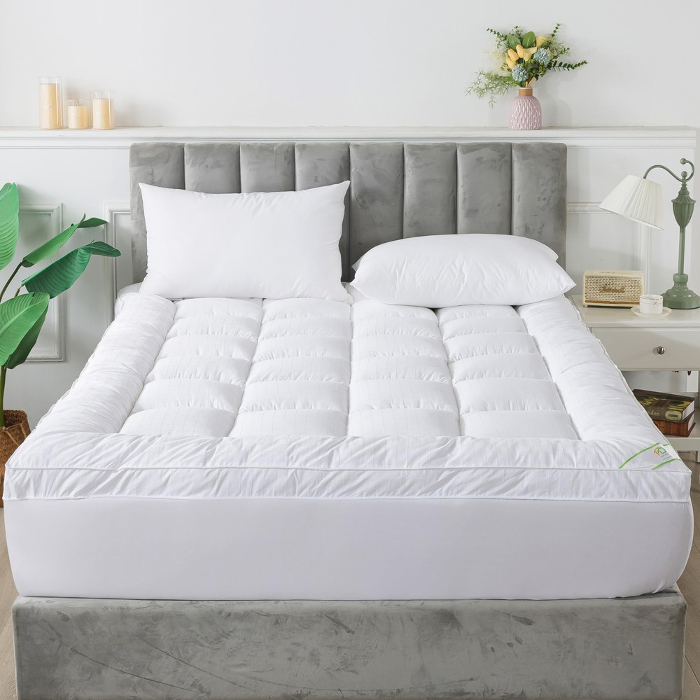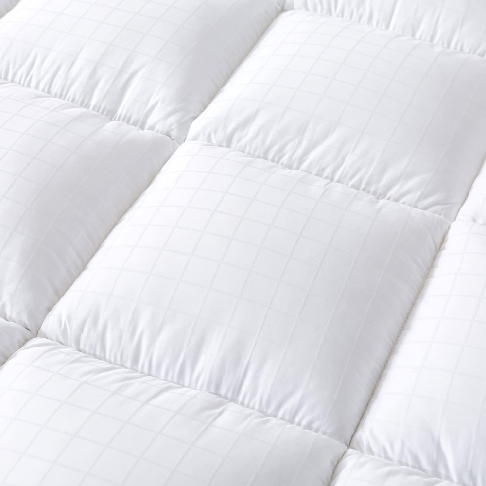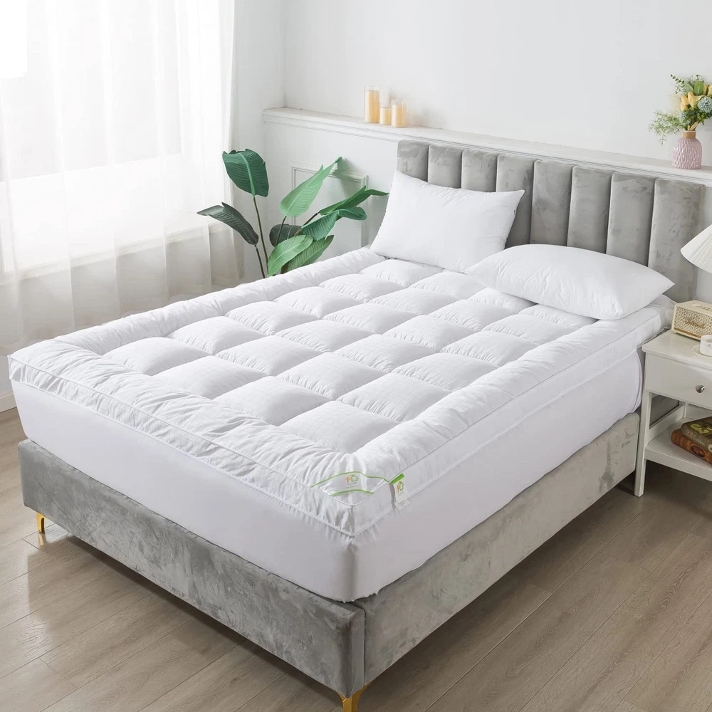 Extra thick and alternative down mattress topper adds softness and comfort to an existing too-firm mattress; luxuriously soft and noiseless Depp Fitted Skirt fits any mattress up to 6-20" deep and the New Stitching design of this quilted pillow top mattress cover avoids any shifting The surface is made of high quality Satin cotton.Filler is super microfiber . The extra layers of microfibe filler create a soft, supportive layer to the top of your bed and will help provide you with a rejuvenating night's sleep. Upgrade your mattress ,This topper has gone through several improvement base on millions of feedback to meet your high standard demand. Machine washable, no pilling for repeated use. Four seasons general and cost-effective.Customer satisfaction is our biggest demand,If you are not satisfied, please contact us anytime.