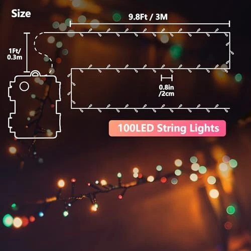 30 Days Return Policy Fast Delivery Trusted seller Twinkle Lights Battery Operated 100 LED Christmas String Lights 8 Modes Waterproof for Home, Garden, Party, Holiday, Christmas Tree Decoration (Multicolor) Product Description 【Super Bright 100 LED fairy Lights】 These Best 100 LEDs Micro LED Battery Operated String Lights Lamp are inlaid on 20ft of high-quality wire, which emits white light after the battery is installed in the battery box,long enough thread to decorate your interesting life. 【Waterproof Fairy String Lights】The battery box and the wire part of the led battery powered string lights are IP44 level. You can easily carry and place the plug in fairy lights anyw you like. 【Battery Powered string lights】Require 3 AA batteries (Not Included) for each string lights, with ON/OFF button on the battery box. 【Low Heat and Safe to Use】LED fairy lights with Low power and heat insulated silver-coated wire makes it not overheat after usage,they can be touched safely for children, the elderly and pets. 【Widely Applicable】The Led Fairy Lights Battery Operated,Perfect for Indoor, Christmas, decorate wedding, ceremony, party, Birthday, Thanks Giving Day, Halloween Parties. Great for use in a restaurant, small business, home etc. Shipping Returns Payment Shipping Shipping is FREE to all addresses other than APO/PO boxes in the lower 48 states. All our stock ships from US-based warehouses. Shipped via USPS or UPS (depending on location and package weight) Unless stated otherwise, all orders will ship within 24-72 hours of your payment being processed. Check our feedback to see the great reviews of FAST shipping we offer. Returns As our valued customer, we will do our best to make sure the product you receive arrives to you on time and as expected. If you are not satisfied with your purchase, please contact us within 30 days of receiving your order to process a return. Payment We currently accept payment via eBay managed payments only. Once payment is cleared, we will dispatch your shipment within 1-3 business days. Please refer to the "Shipping" tab for more information regarding shipping speed to your destination.