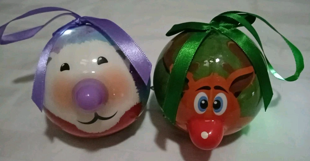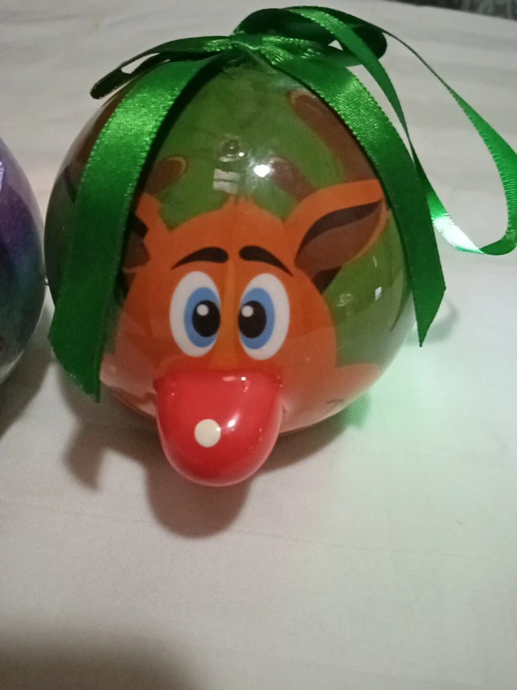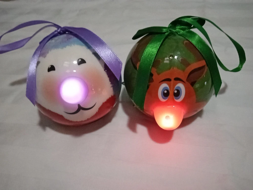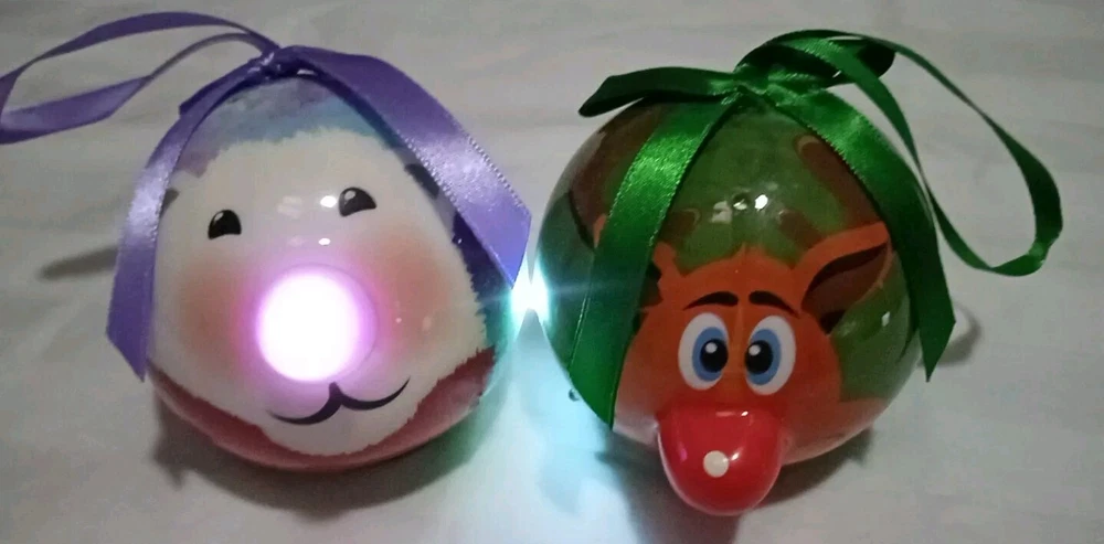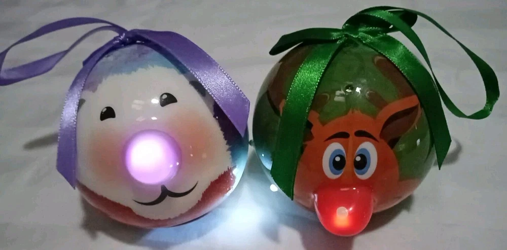 Color: Multicolor Occasion: Christmas Type: Illuminating Material: Plastic Features: Animated, Hanging, Light Up, Reusable UPC: Does not apply Item Length: 3.5 in Item Height: Less Than 5 in Brand: D&D gtin13: Does not apply Theme: Holiday Item Weight: 2 ounces Shape/Theme: Ball Shape: Circle Number of Items: 2 Item Width: 3.5 inches