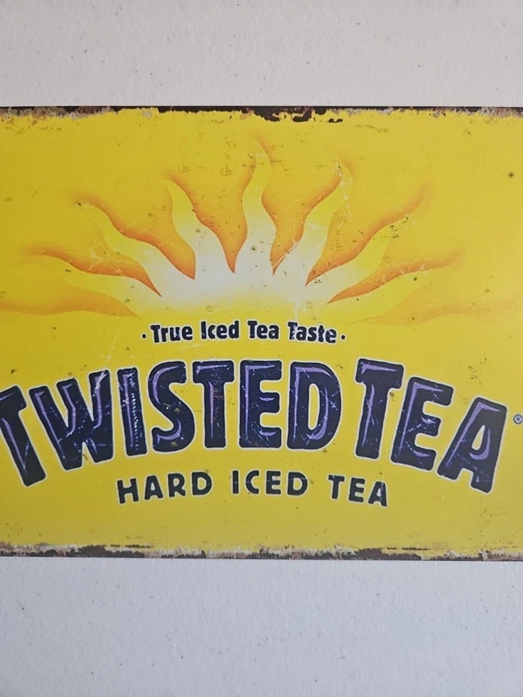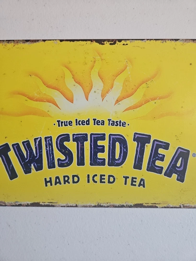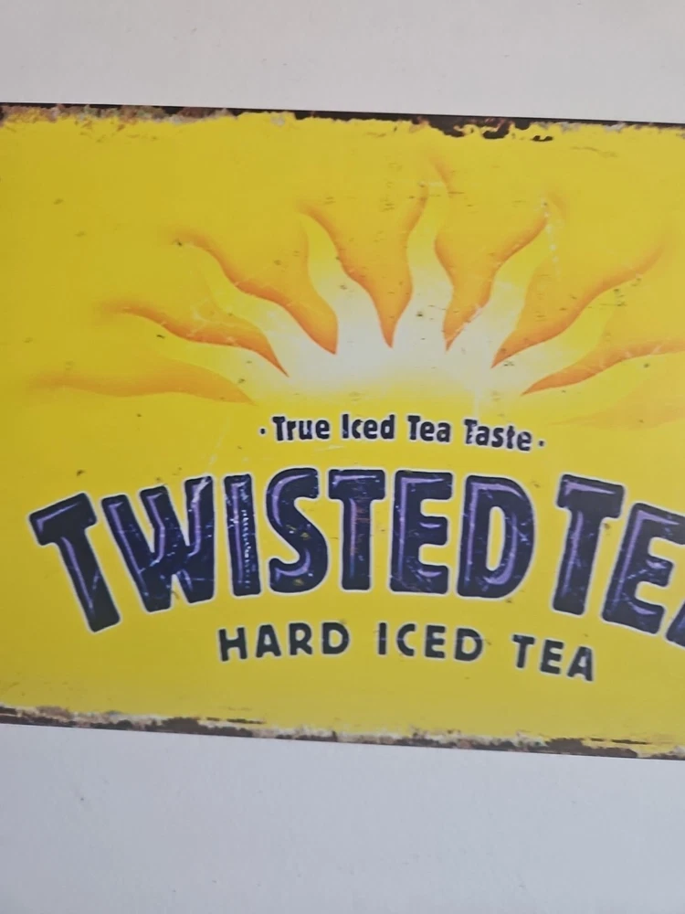 Add a rustic touch to your decor with this Twisted Tea metal sign. The 8x12 inch rectangle features a novelty pattern and a rusted look, making it perfect for any room. The sign can be hung or mounted on the wall, and it comes with all the necessary parts for easy installation. The sign is made of high-quality metal and has a decorative finish that adds to its charm. Its medium size and horizontal orientation make it a great addition to any bar or club-themed space. Get your hands on this unique and stylish sign today!