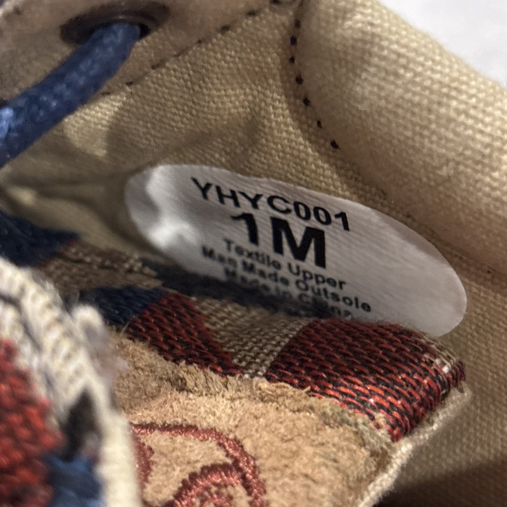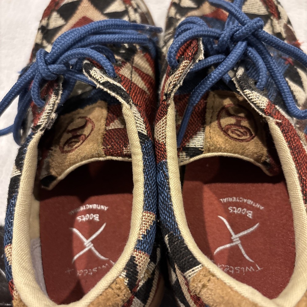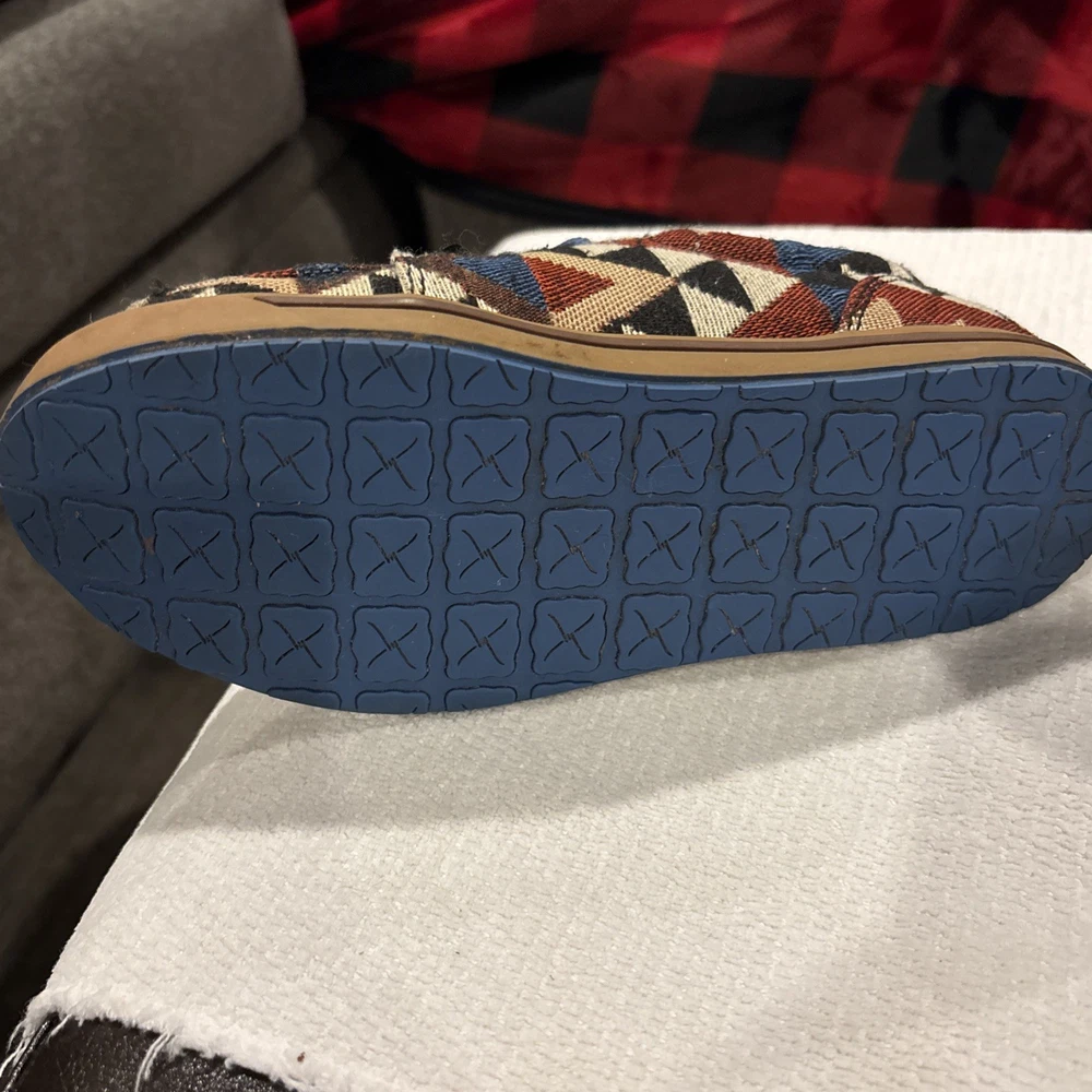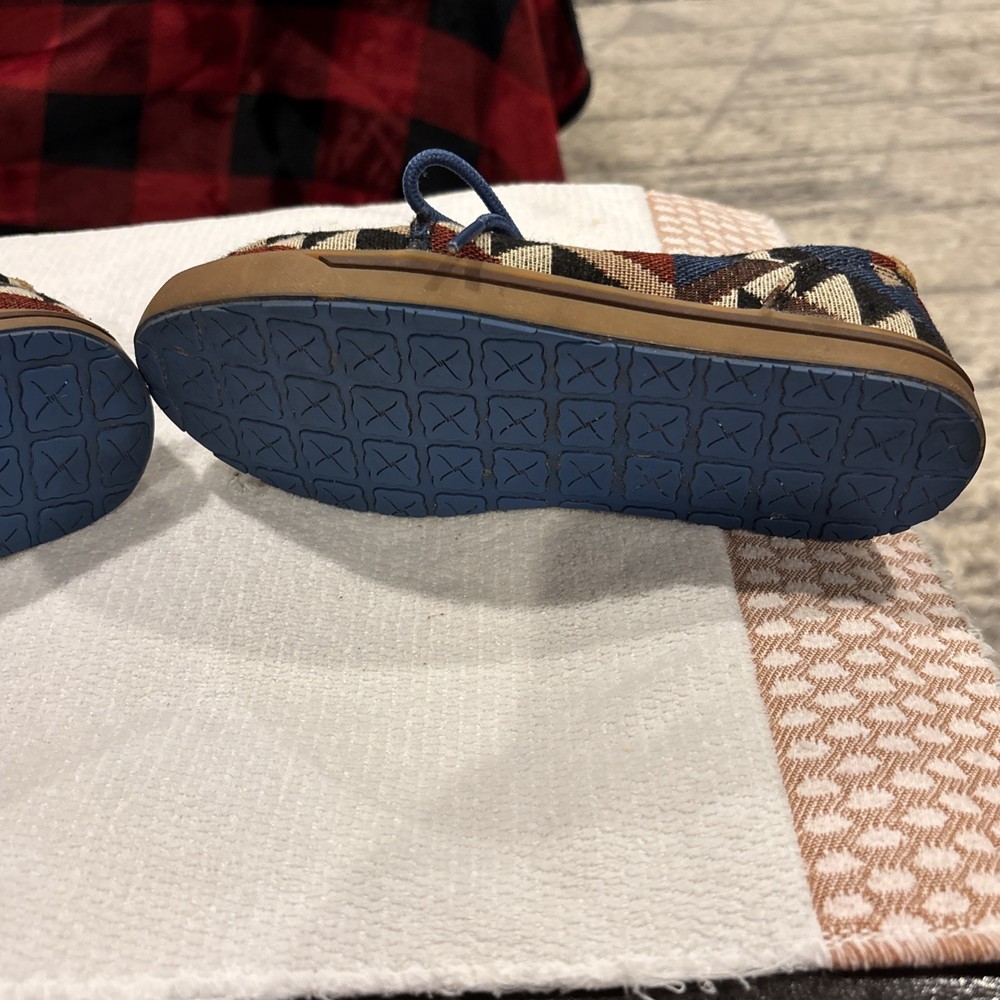 The Twisted X Hooey Loper Aztec Southwestern Canvas Mocs Shoes YHYC001 in size 1M are stylish and fun moccasins for boys. Featuring a colorful geometric Aztec pattern, lace-up closure, and comfortable canvas material, these shoes are perfect for everyday wear. The Twisted X Hooey brand ensures quality and durability, making these mocs a great addition to any young boy's wardrobe.
