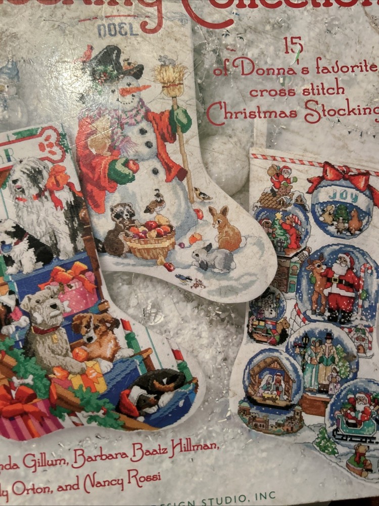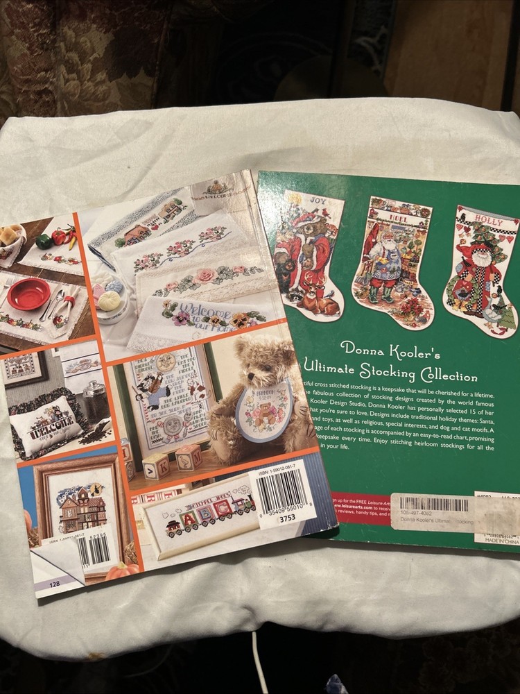 Two Donna Kooler cross stitch pattern books. “The Best Designs From” & “Stocking Collection”. Stocking has 15 stocking patterns. Each shows patterns in color. “The Best Designs” has 60+ different patterns with a colored print of each. Both are in excellent condition. There is some scribbles on the into page but otherwise all intact and good