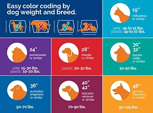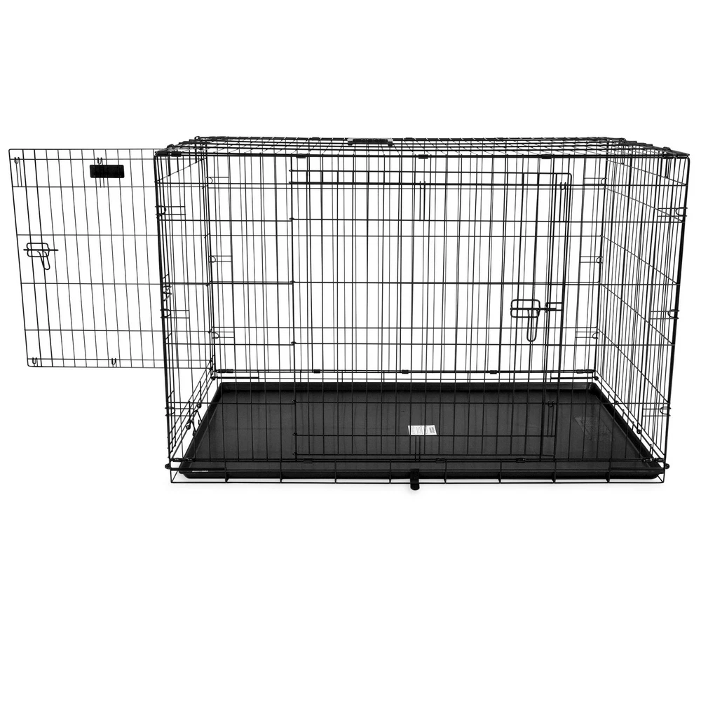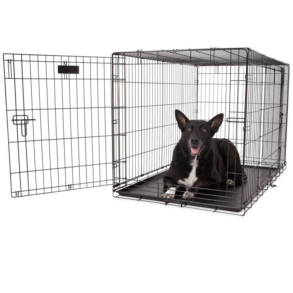 Durable, Heavy Duty Constuction: Suitable for high anxiety pets, this dog crate for large dogs has a 5-point locking system to eliminate gaps & 2 doors for maximum security and access. Rust-resistant enables occasional outdoor use 48 Inch Dog Crate: Measures 48" x 30" x 32" & weighs 39.4 lbs. Rounded corners eliminate sharp edges prevent snags and non-skid rubber feet protect floors. If in doubt, buy a size up. This collapsable dog crate is easy to store & transport Dog Kennel Designed to Grow With Your Dog: This pet carrier includes durable, removable shatter-resistant pan for easy cleanup & divider panel to adjust the interior size for a growing dog during housebreaking making it a great puppy crate Kennels & Houses: Crate & kennel training is vital for dog safety & comfort. We provide dog products like traditional travel dog crates, wire training & exercise dog kennels, play pens, barn-style dog houses & more For Pets and Pet Parents: Petmate provides everyday essentials for pet parents, dogs, cats & other pets: litter box accessories, pet toys, cat cages, dog cages, gravity water/food bowls, dog crates, pet beds, cat crates, cat carriers & more