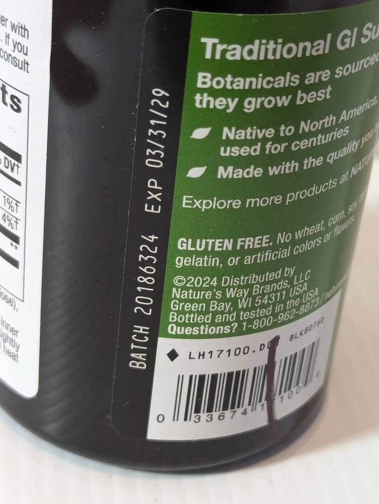 Is Discontinued By Manufacturer:NoSpecial Ingredients:Elm BarkProduct Dimensions:4.25 x 2 x 2 inches; 0.8 ouncesgtin13:033674171004Item Form:CapsuleDepartment:HerbsUnit Count:100 CountDiet Type:VegetarianProduct Benefits:Nutritional SupportType:Does not applyPrimary Supplement Type:multivitaminUPC:033674171004Item dimensions L x W x H:4.25 x 2 x 2 inchesItem Weight:22.68 gFlavor:UnflavoredBrand:Nature’s WayItem model number:17100Features:Vegan