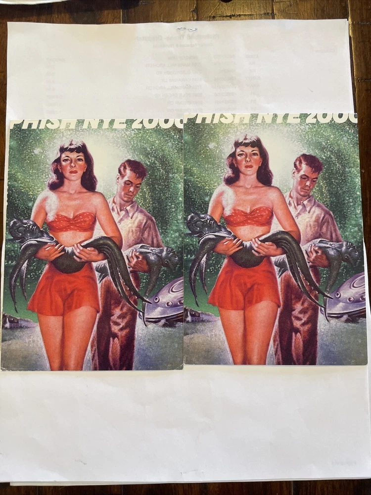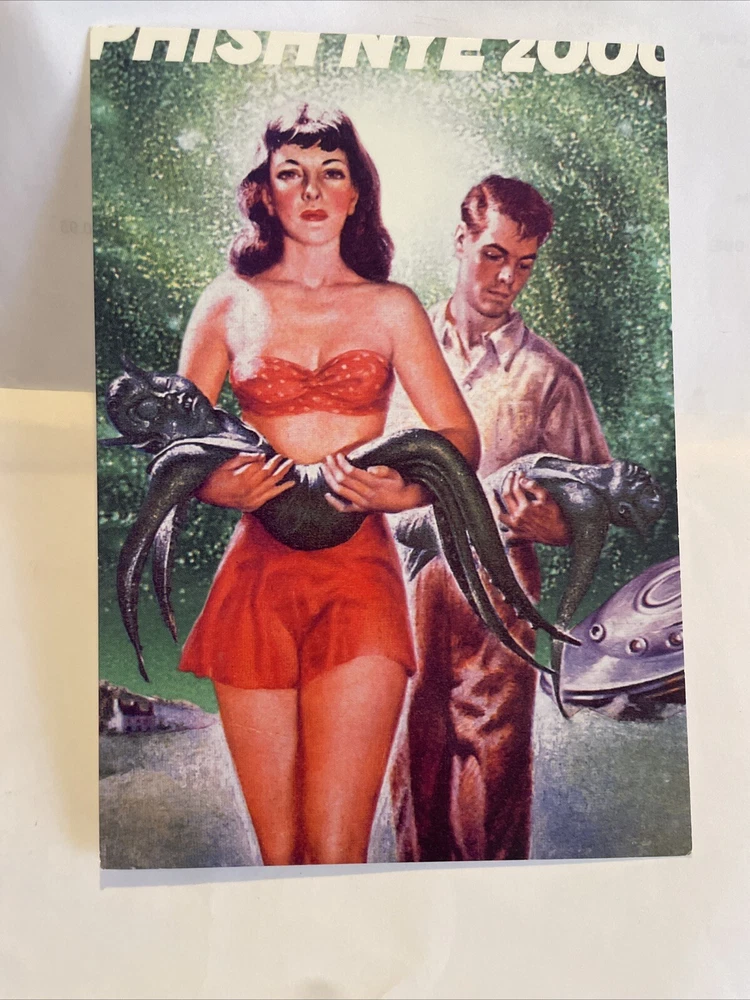 This rare Phish Y2K postcard from the year 2000 features the iconic band performing at the Big Cypress Florida festival. The postcard is a must-have for any music memorabilia collector, especially those who are fans of Phish and rock & pop music. The card captures the essence of the band's live performances and is a great addition to any collection.