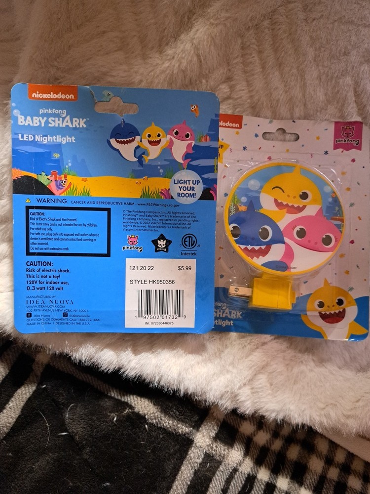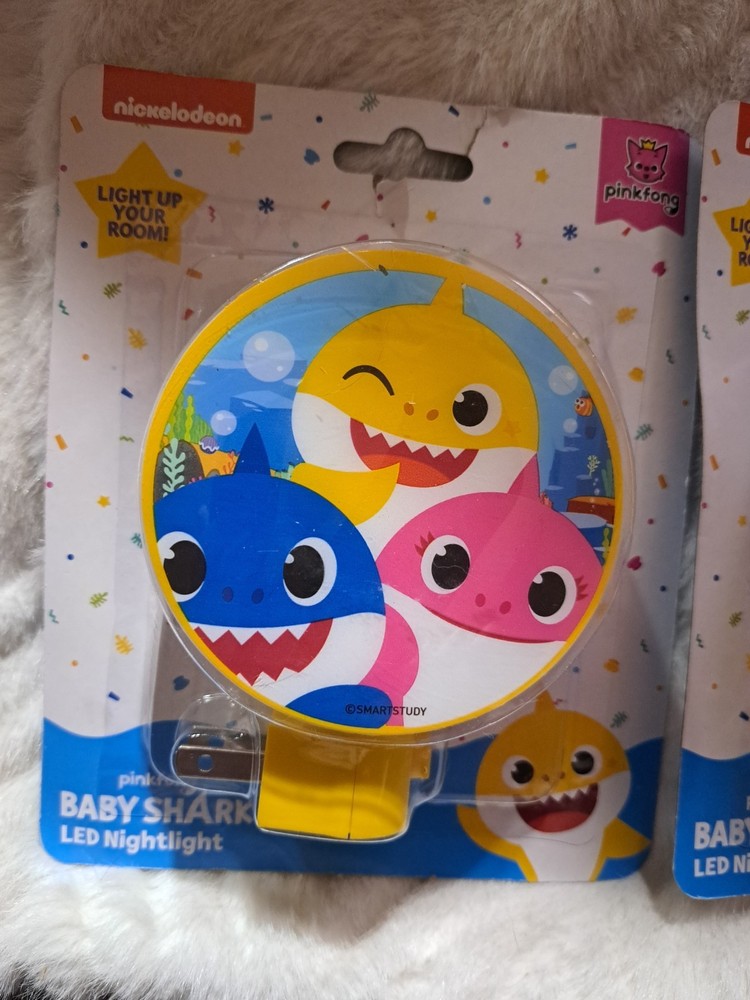 The Two Pinkfong Baby Shark Nightlights are adorable and entertaining toys for babies aged 2 years and up. Featuring the popular character from the Baby Shark song, these nightlights are colorful and engaging, perfect for young children who enjoy TV, movies, and music. With a unisex design, these nightlights are sure to delight any little one and create a fun and playful atmosphere in their bedroom or playroom. No bulb included