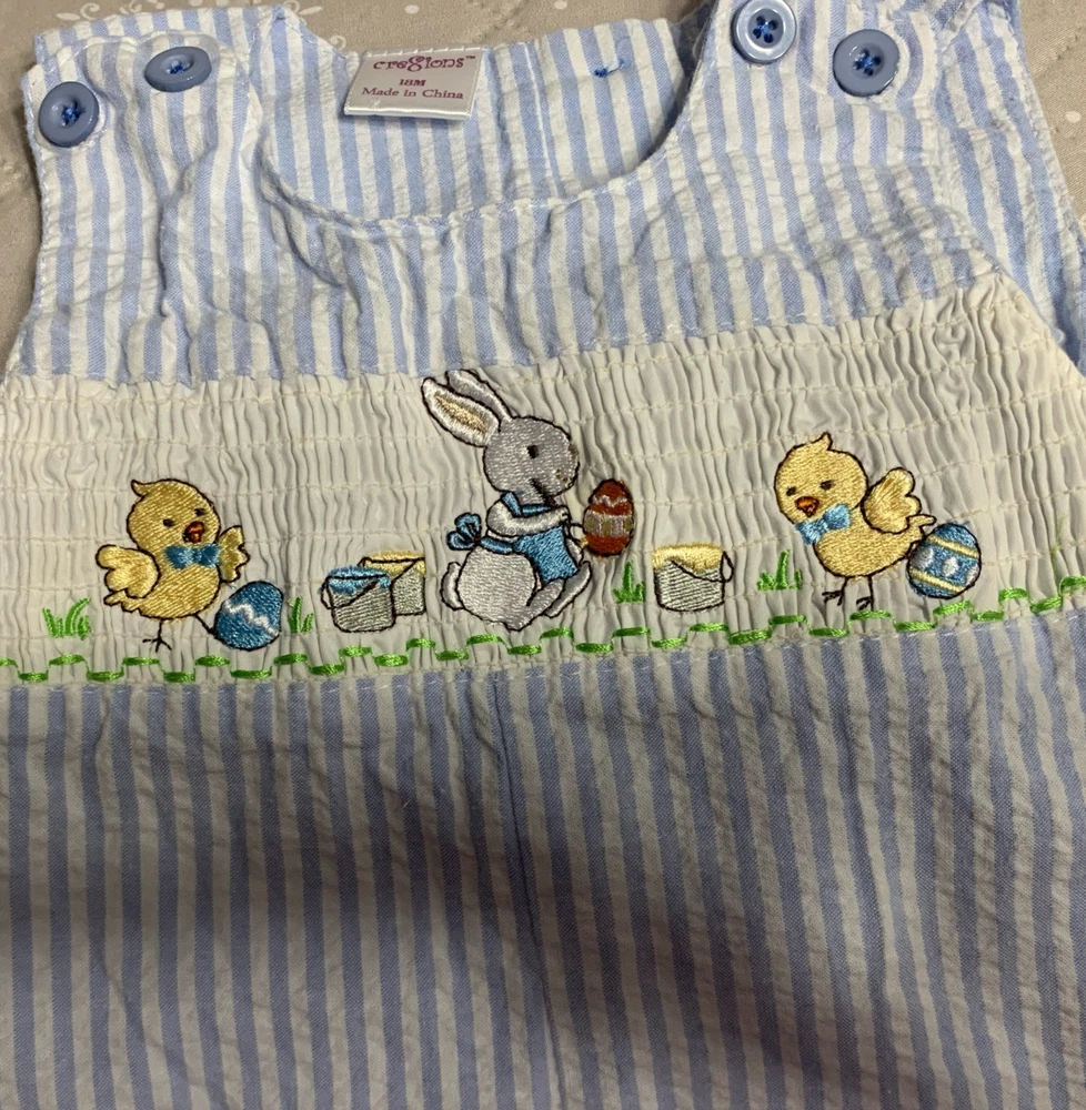 $ 9.51Bailey Boys Reversible Jon Jon Short Romper Baby Boy Sz 12 Month Seersucker EUC
