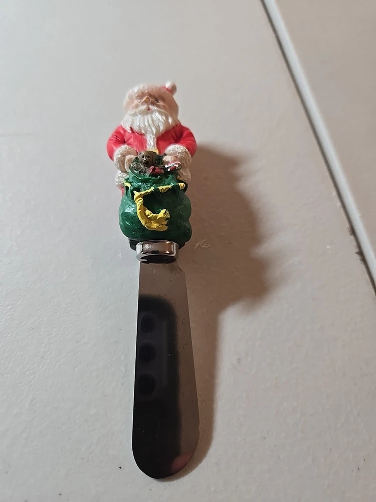 Two Stainless Steel Holiday Cheese Spreaders Santa Christmas Tree