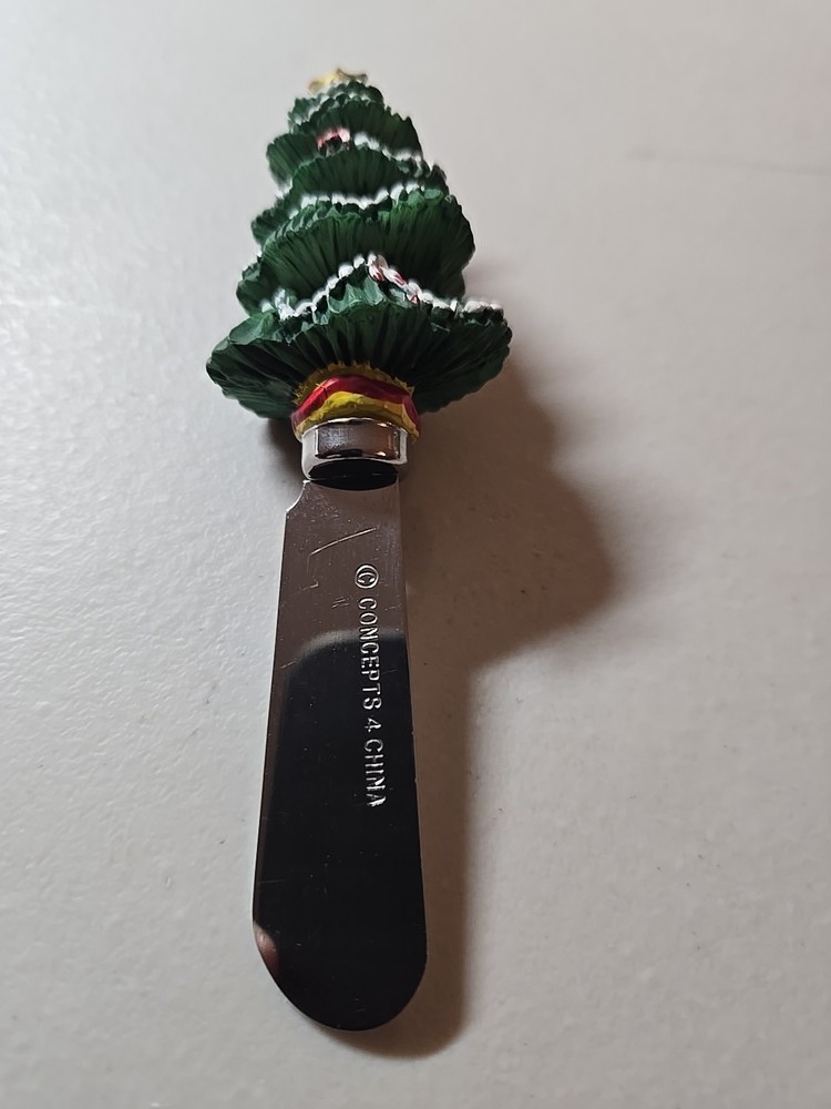 This product is a set of two stainless steel holiday cheese spreaders in the shape of Santa Claus and a Christmas tree. Manufactured in China by the brand Concepts for China in the 1990s, these collectible spreaders are perfect for adding a festive touch to your holiday table. The multicolor design and unique shapes make them a charming and practical addition to your Christmas celebrations. Made of durable stainless steel, these spreaders are sure to last for years to come and bring joy to your holiday gatherings.