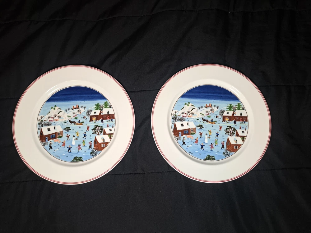 Two Villeroy & Boch Naif Christmas 10.5" Dinner Plates Laplau Luxembourg. Both plates are in excellent condition. See photos.
