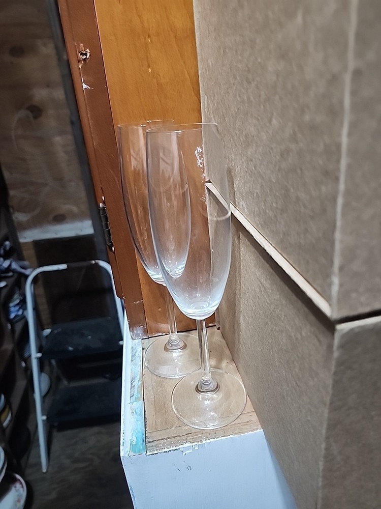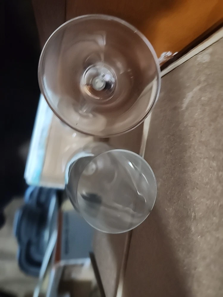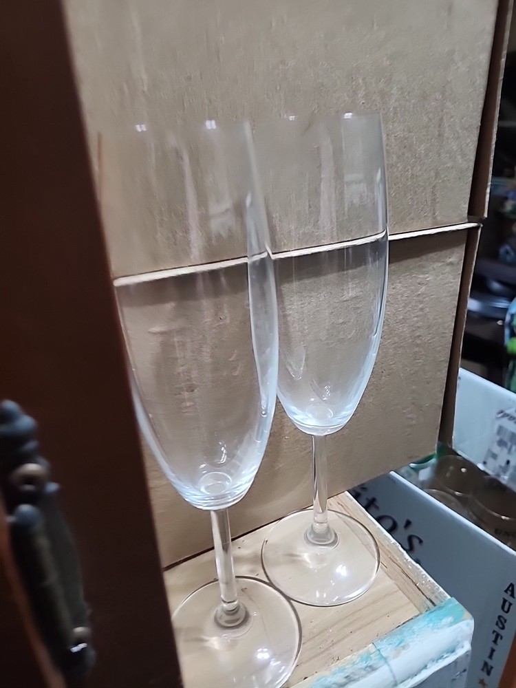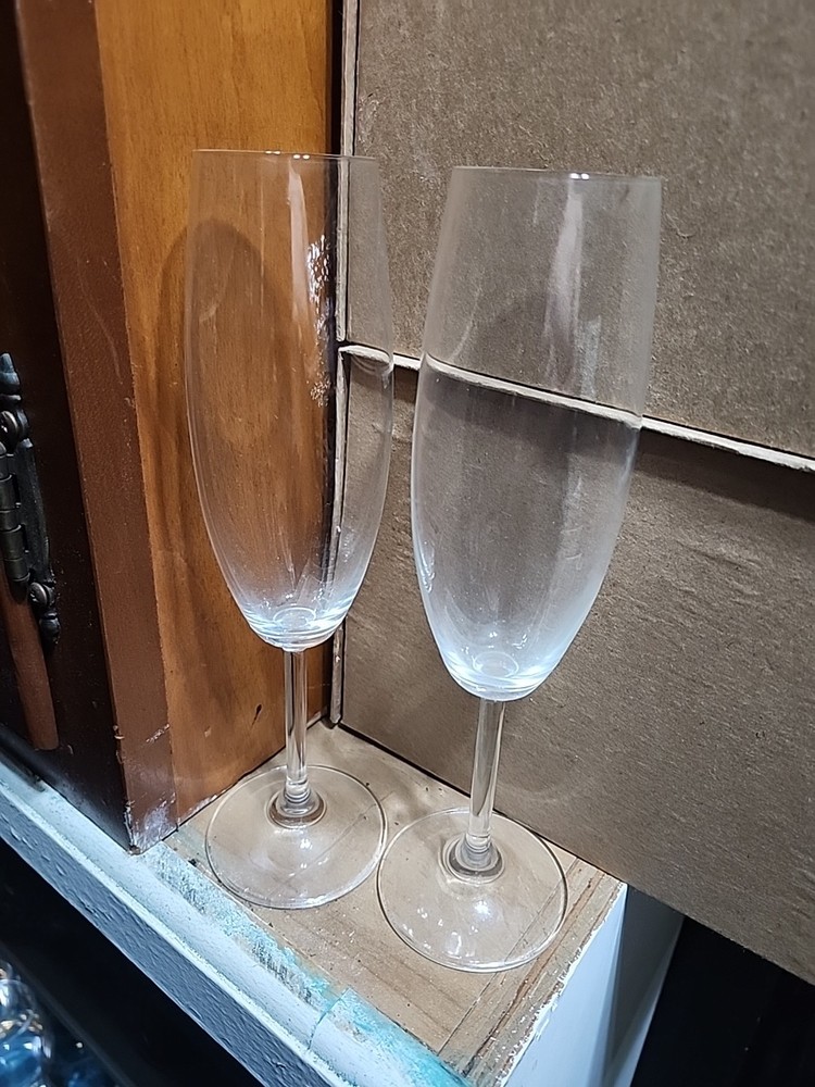 Elevate your drinking experience with these two vintage champagne/wine crystal glasses. Crafted from high-quality crystal, these glasses are perfect for all occasions. With a tapered shape and a 10oz capacity, they are just the right size for your favorite sparkling wines and champagnes. The clear color adds to their elegance, making them a great addition to your drinkware collection. These unmarked glasses are a true testament to vintage craftsmanship, made in the United States with a dedication to quality and style. Measuring 8 inches in height and 2 inches in diameter, they are a perfect fit for your hands and your table. Don't miss out on the chance to own these beautiful, one-of-a-kind glasses.