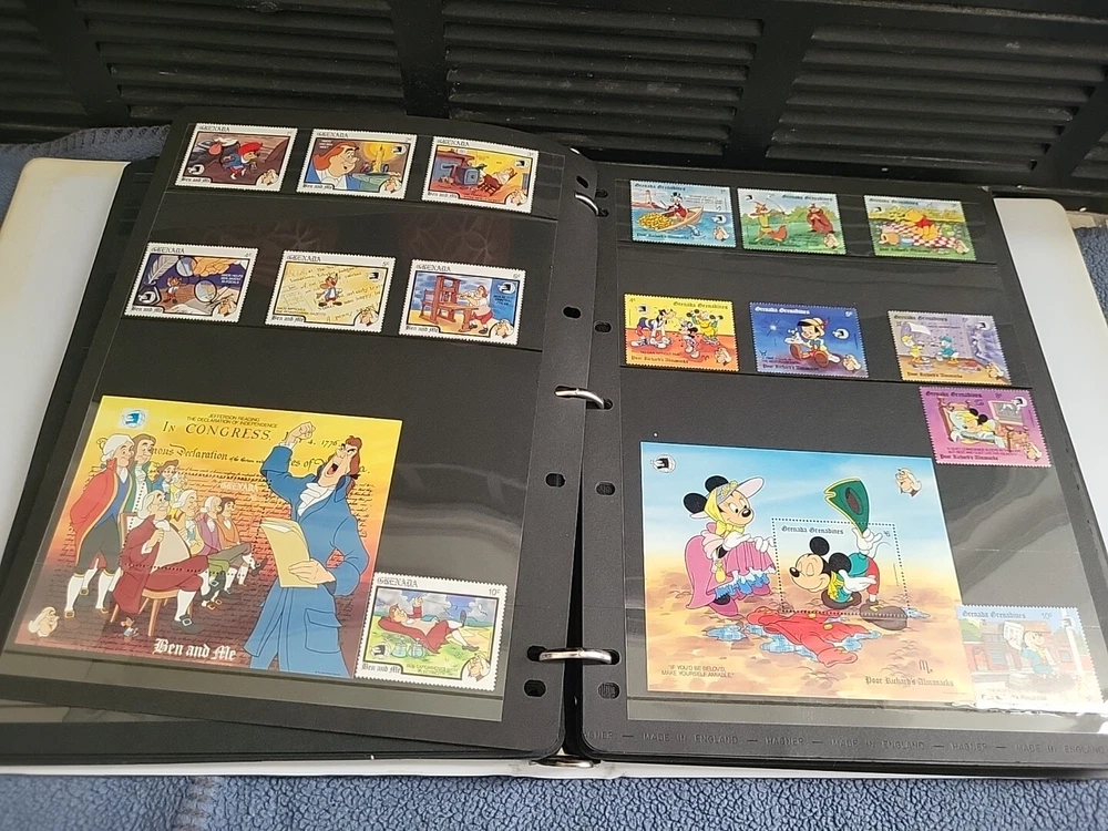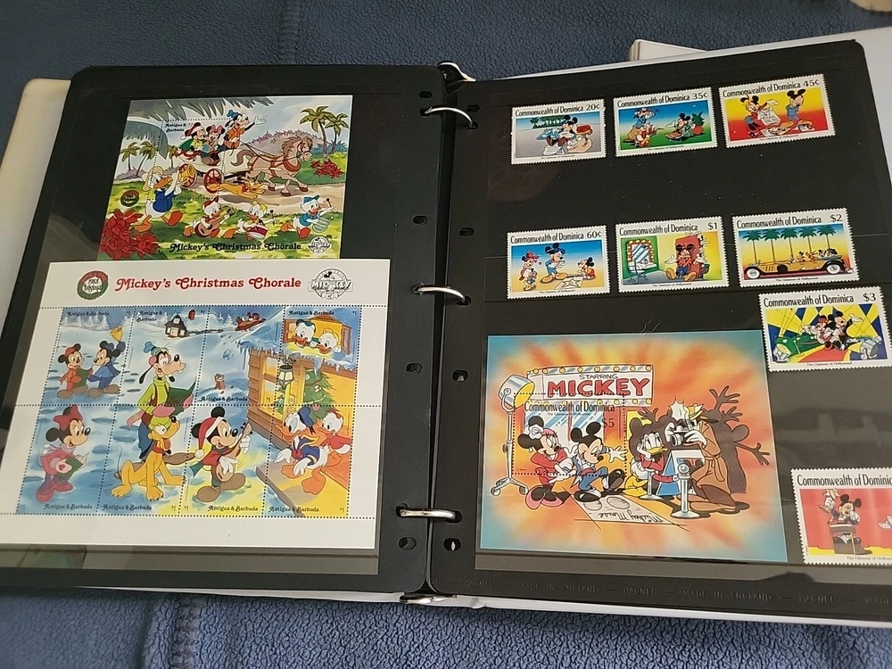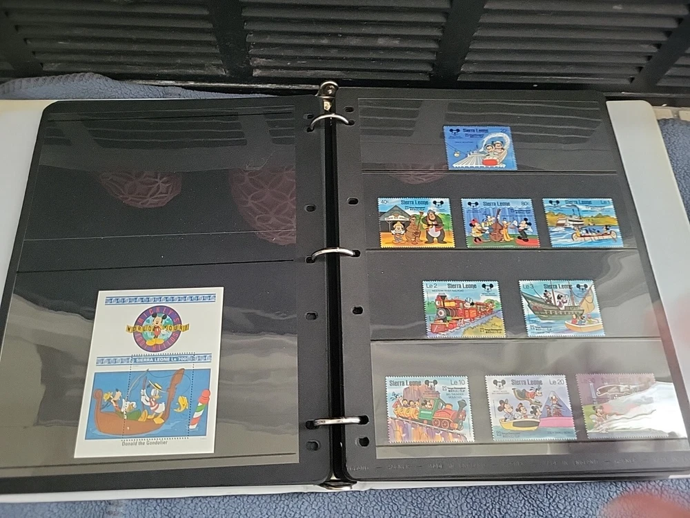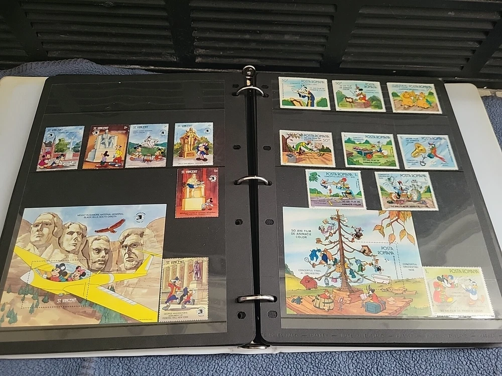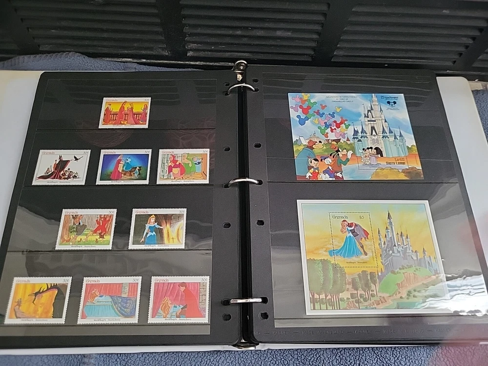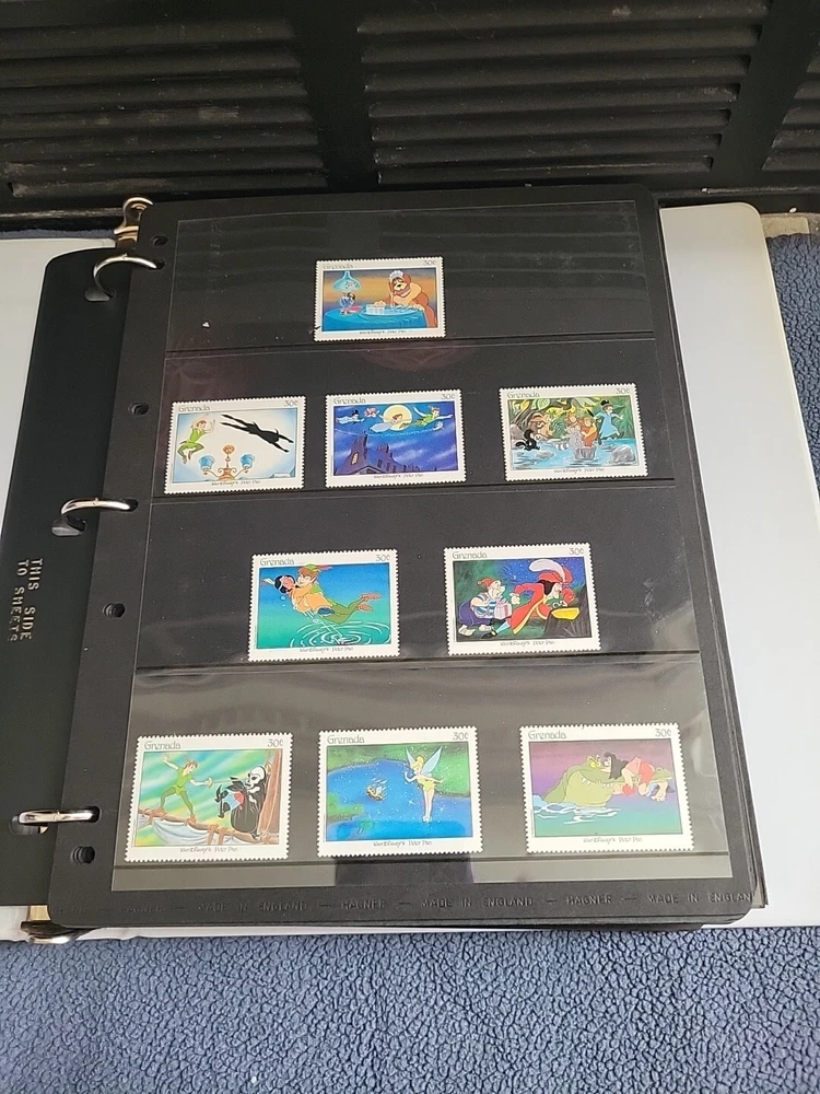 Two separate Disney stamp albums with at least 30 pages of collectible stamps. Gently used. The albums are older and have some discoloration, but in great condition. The pages are easy to turn, and there are some blank spaces for additional stamps. I could not include all of the pages for picture references due to the limit of 24. But if anyone has any questions about a particular stamp collection, please email me, and I will happily send a picture for reference if that collection is in the album. Thank you!