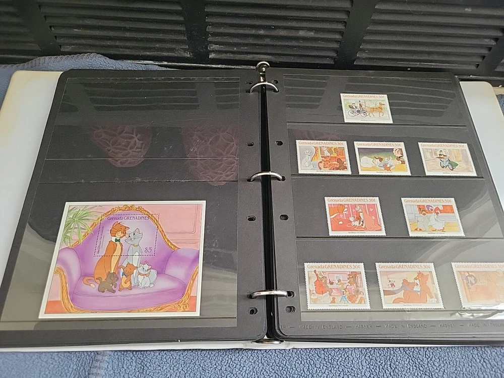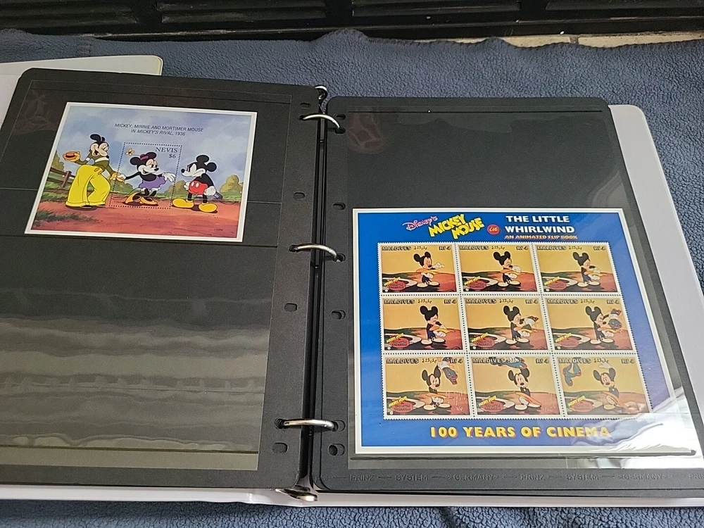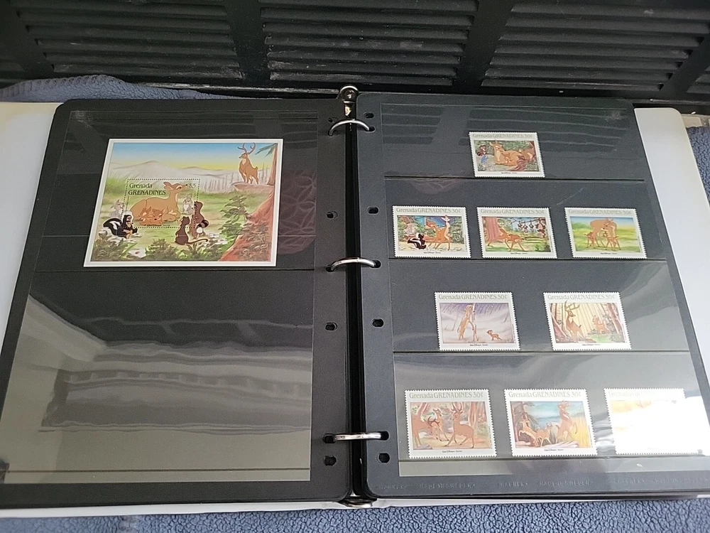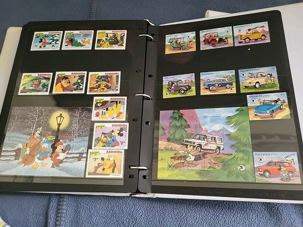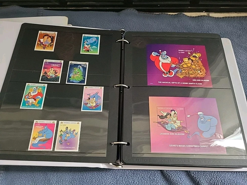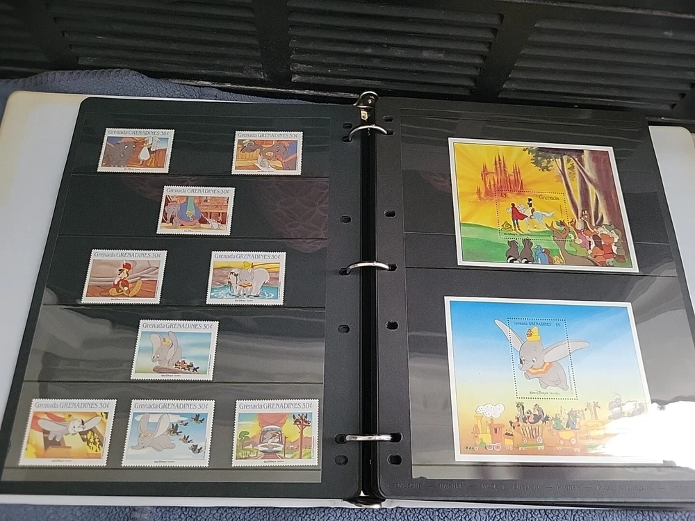 Two separate Disney stamp albums with at least 30 pages of collectible stamps. Gently used. The albums are older and have some discoloration, but in great condition. The pages are easy to turn, and there are some blank spaces for additional stamps. I could not include all of the pages for picture references due to the limit of 24. But if anyone has any questions about a particular stamp collection, please email me, and I will happily send a picture for reference if that collection is in the album. Thank you!