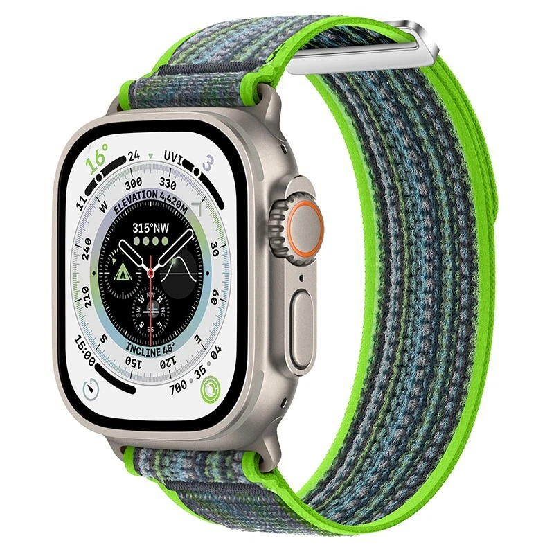 Two-section trail nylon loop strap for Apple Watch 10 9 8 42/44/46/49mm Ultra2 Features: 100% Brand new and high quality. [Premium Material ] Made of tough, durable nylon, this watch strap excels in challenging conditions. Its soft, finely woven texture, combined with enhanced elasticity, ensures remarkable comfort. The skin-facing side is tightly woven, offering a soft cushion and a premium feel. [Security & Easy to install] Durable Trail Loop Nylon wristbands comes with watch lugs on both ends, which locks onto watch interface precisely and securely. It can effectively prevent your apple watch from falling off and becoming loose. The upgraded linker on both ends locks precisely and securely on. Don't need any tools, easy and direct installation and one button removal. [For All Scenes] Suitable for many scenes, especially suitable for sports such as hike, run, outdoor Activities. Making the ultimate sports watch for athletes of all kinds required a unique approach. That?s why specialized bands for outdoor adventures, endurance training, and water sports are as meticulously crafted as the watch itself. [For Wrist Size] Suitable for 130-220mm (5.12"-8.66") wrists. Compatible With: > For Apple Watch Ultra / Ultra 2 > For Apple Watch Series 10 / Series 9 / Series 8 / Series 7 / Series 6 / Series 5 / Series 4 / Series 3 / Series 2 / Series 1 / > For Apple Watch Nike > For Apple Watch Hermes > For Apple Watch SE Package Includes: 1x Trail Loop Sport Band !!! ( PS: The Apple Watch is Not Included )