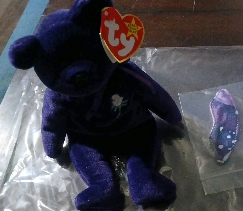 The Ty Beanie Babies Princess Bear Toy is a nostalgic collectible featuring Princess Diana, released in 1997 by the popular brand Ty. This Beanie Baby plush toy is recommended for all ages, making it a perfect addition to any Beanie Babies collection. With its charming design and historical significance, this Princess Bear toy is sure to bring joy to children aged 3-4 years and older fans of the Beanie Babies franchise. A timeless piece that captures the essence of a beloved princess. includes eye mask for bear. My daughter is ready to let her go to save up for a new car thanks for looking