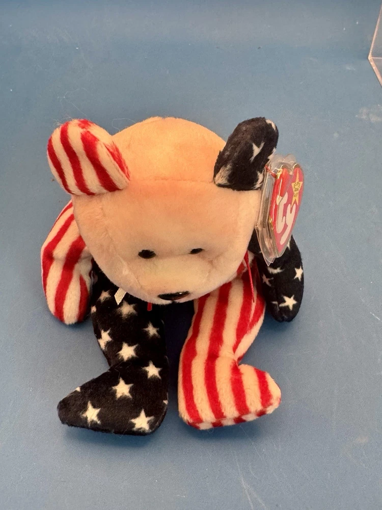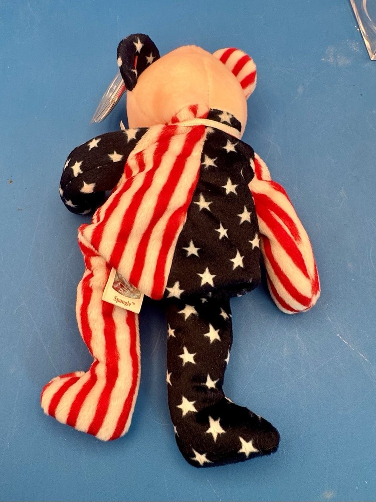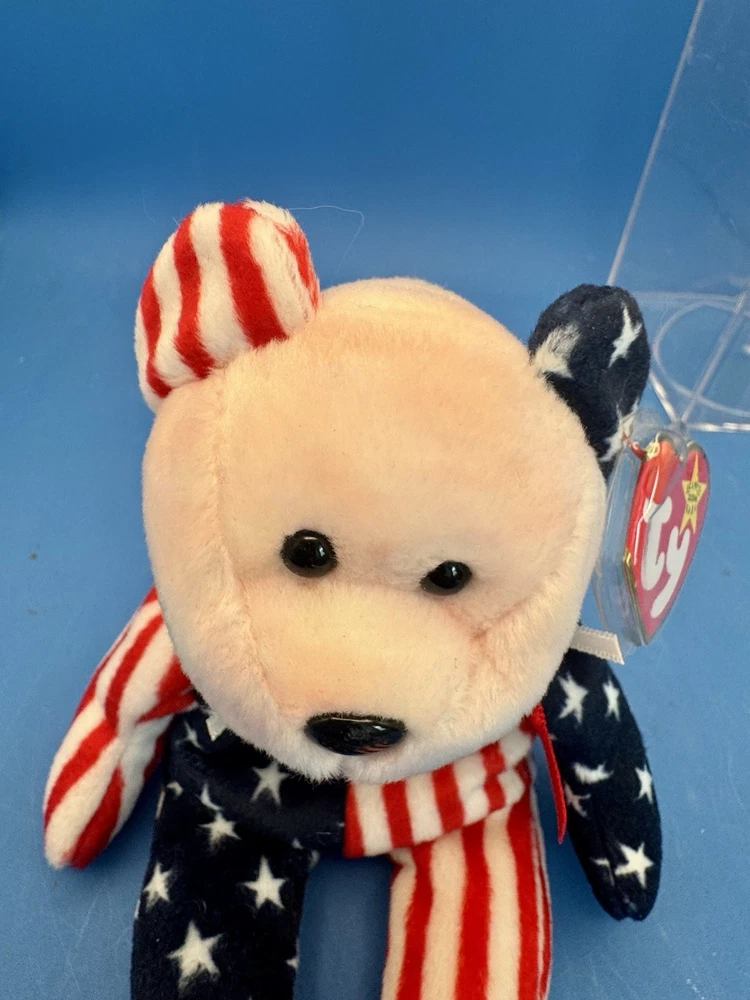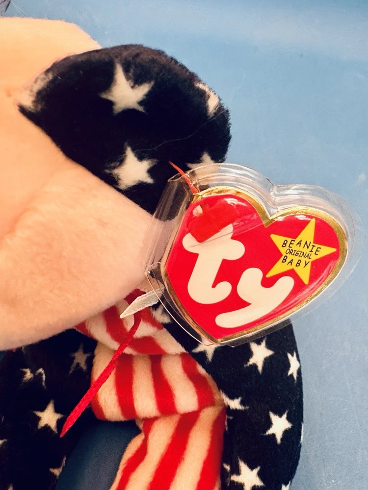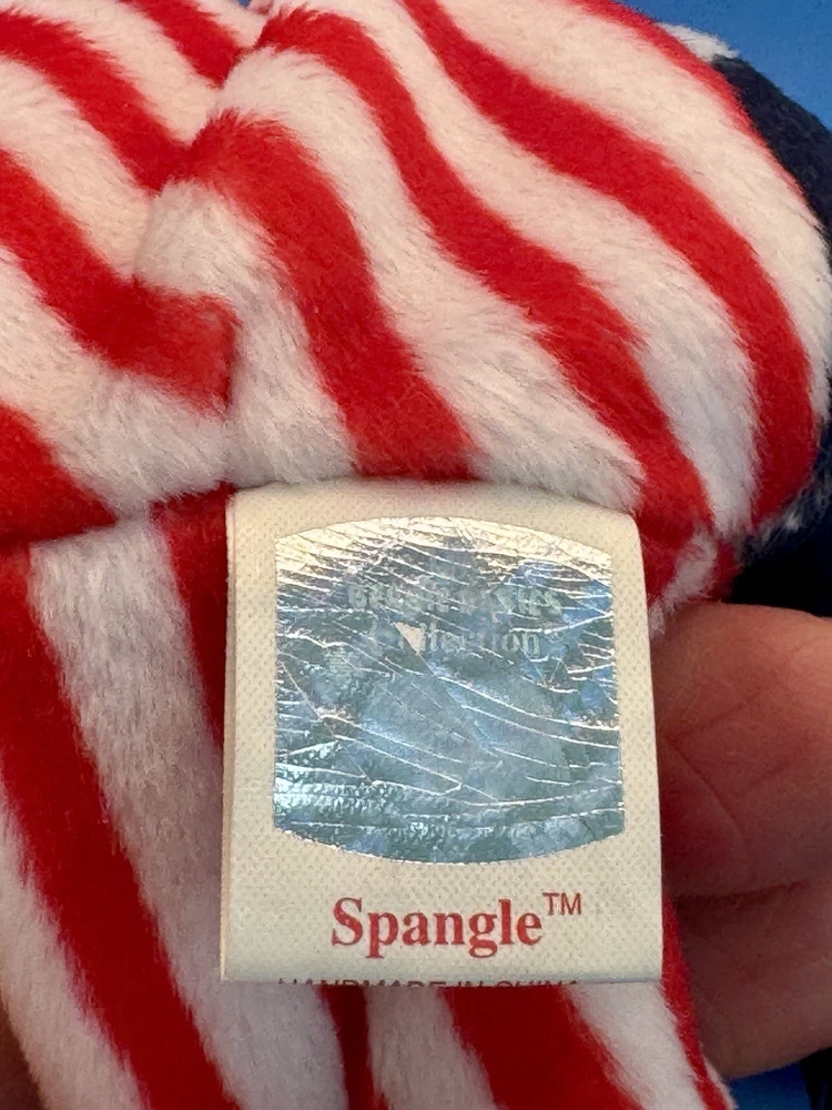 This product is a Rare Ty Beanie Baby “Spangle” the Pink Faced Bear, released in 1999. Birthday June 14, 1999. RARE MWMT Never played with, plastic on tag, no pets, smoke free home, stored in acrylic box. Tag Errors - 1. Oakbrook, IL. U.SA. Instead of Oak Brook, IL, U.S.A. One word instead of two and period after IL instead of a comma. 2. Gosport has a space between t and and the h. 3. Space between “be” and exclamation point. 4. Tush Tag is not stamped 5. Tush Tag states P.E. Pellets, Reg. Number PA 1965 (KR) Rare manufactured in Korea This collectible plush toy falls under the Beanie Babies theme and is a part of the original Beanie Babies line by Ty. The bear .is made in China and is recommended for children aged 3 and above. With its charming design and limited availability, this Bear Beanie Baby is a sought-after item for collectors and fans of the Beanie Babies franchise.