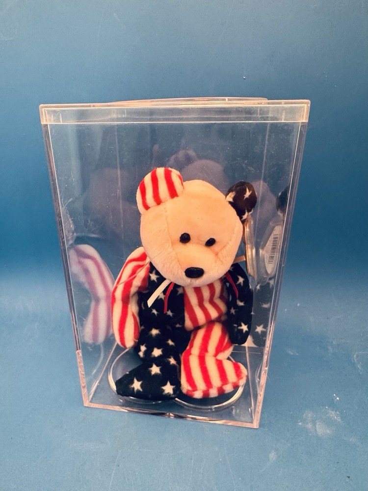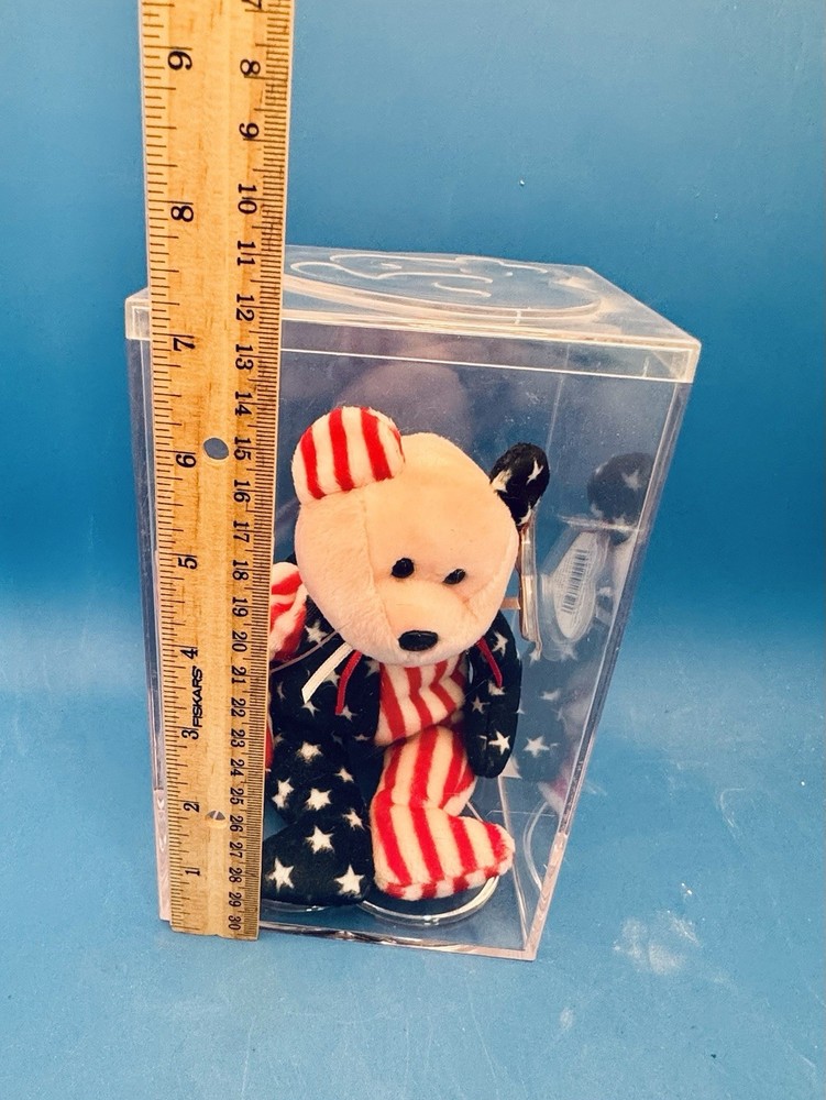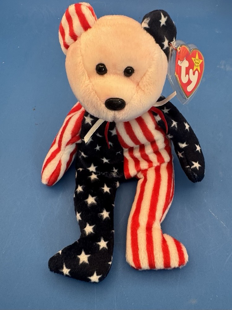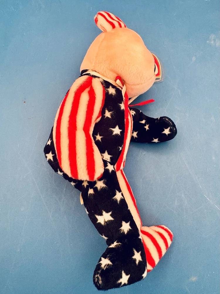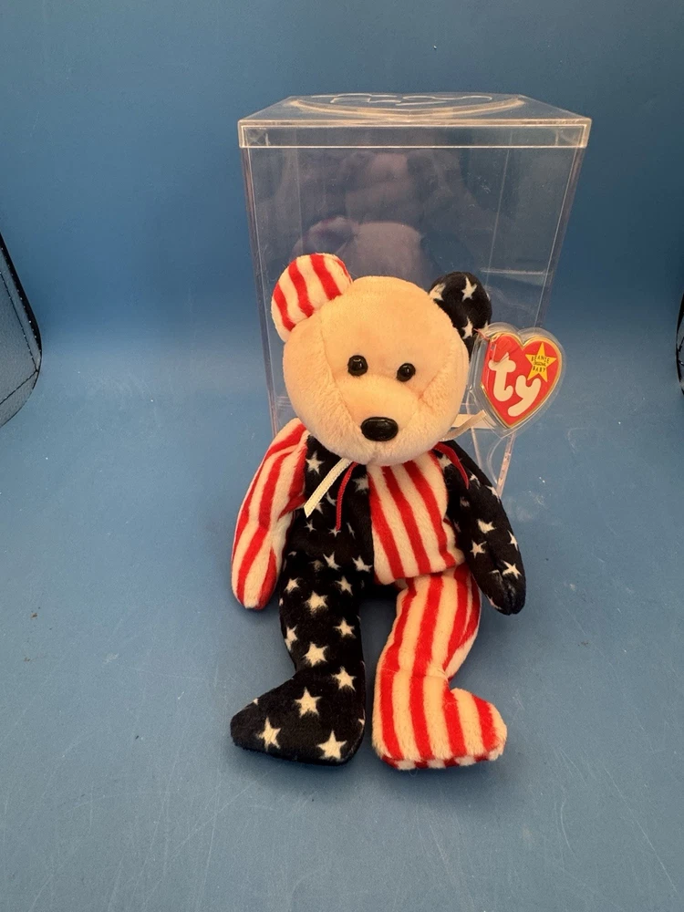 This product is a Rare Ty Beanie Baby “Spangle” the Pink Faced Bear, released in 1999. Birthday June 14, 1999. RARE MWMT Never played with, plastic on tag, no pets, smoke free home, stored in acrylic box. Tag Errors - 1. Oakbrook, IL. U.SA. Instead of Oak Brook, IL, U.S.A. One word instead of two and period after IL instead of a comma. 2. Gosport has a space between t and and the h. 3. Space between “be” and exclamation point. 4. Tush Tag is not stamped 5. Tush Tag states P.E. Pellets, Reg. Number PA 1965 (KR) Rare manufactured in Korea This collectible plush toy falls under the Beanie Babies theme and is a part of the original Beanie Babies line by Ty. The bear .is made in China and is recommended for children aged 3 and above. With its charming design and limited availability, this Bear Beanie Baby is a sought-after item for collectors and fans of the Beanie Babies franchise.