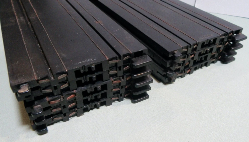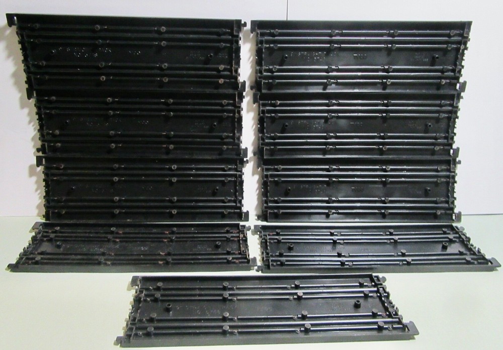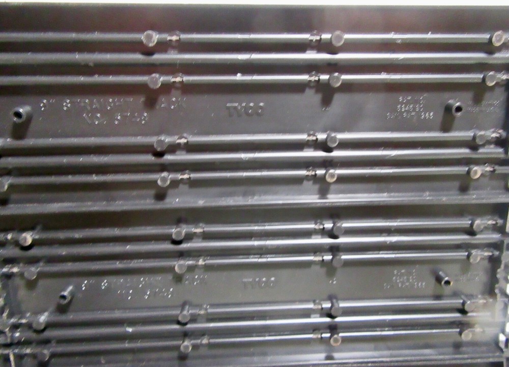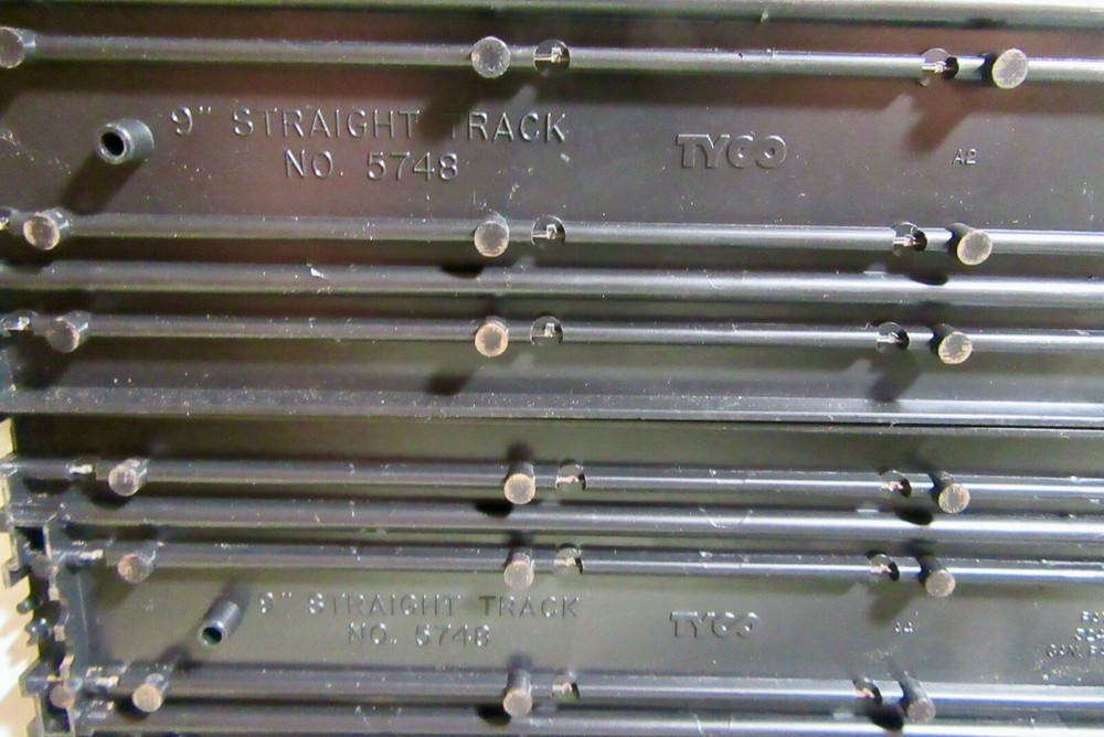 Explore the world of vintage slot car racing with this lot of nine Tyco 9" straight tracks. These classic tracks, model #5748, are an original piece from the 1970s, offering a touch of nostalgia to your collection. Proudly manufactured in the United States, they reflect the quality and durability that Tyco is known for. Perfect for enthusiasts and collectors aged 8-11 years, each track piece is a testament to the era's engineering. Add a authentic touch to your racing setup with these time-tested tracks and create lasting memories as you relive the golden age of slot car racing. Seller's comments: All tracks have the larger connecting tab, 3 tracks have broken smaller tabs on one end and 2 have smaller broken tabs on the other end. No cracks or breaks in the tracks were observed.