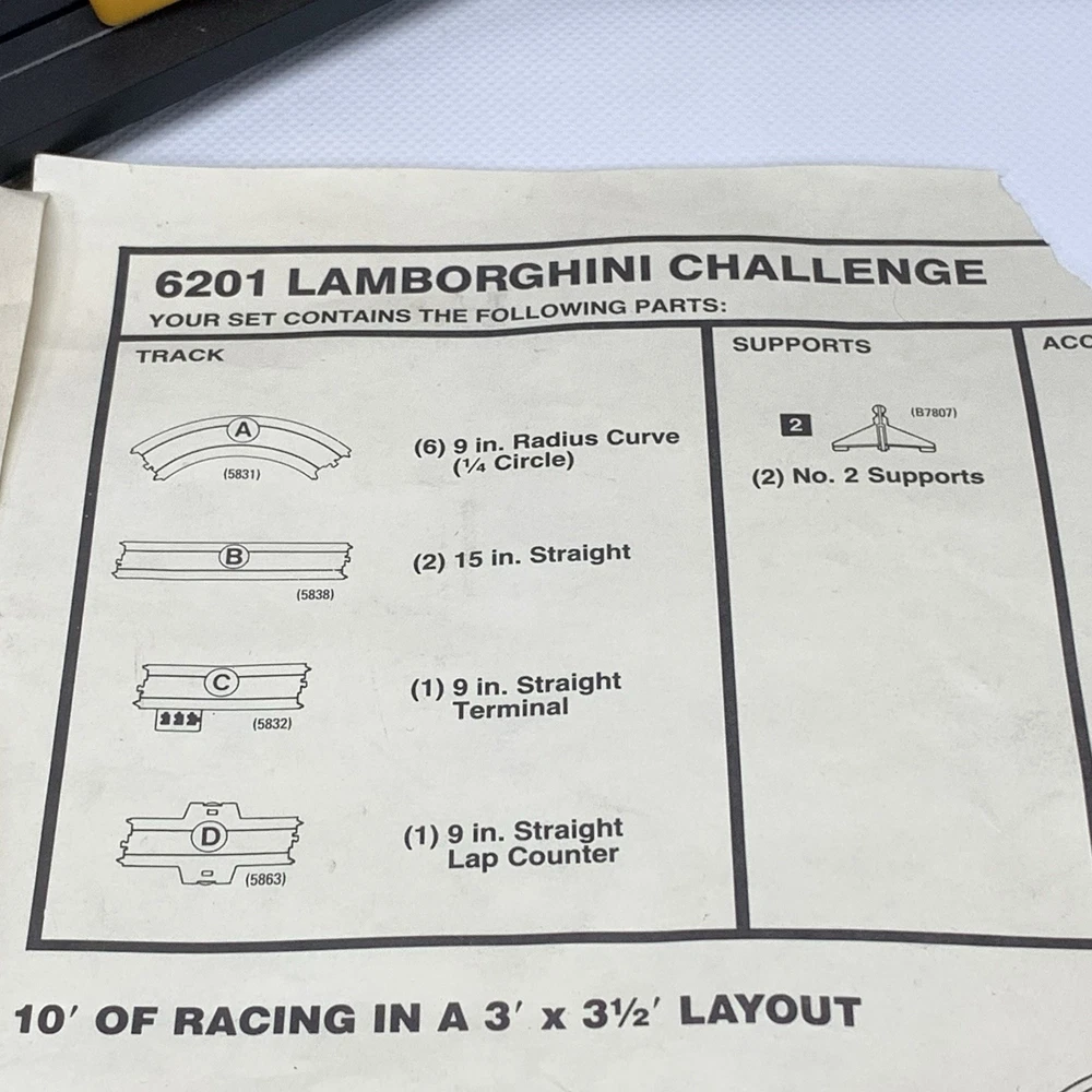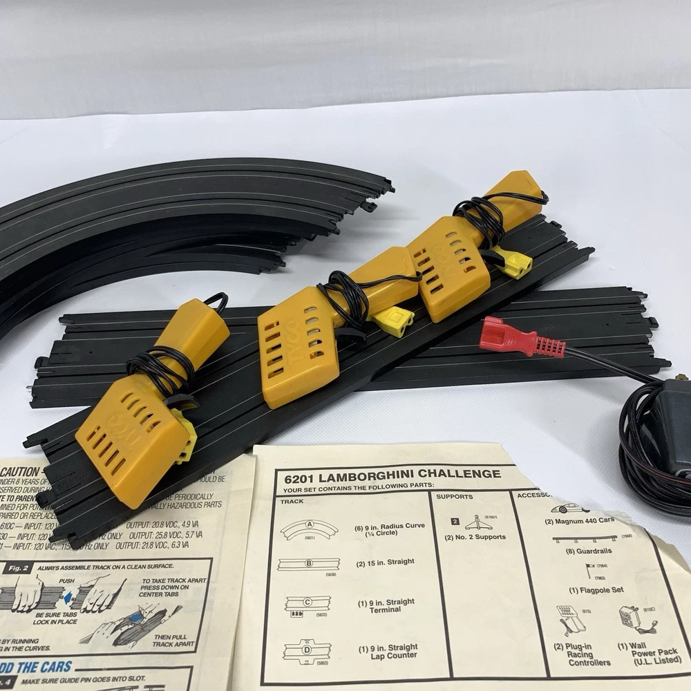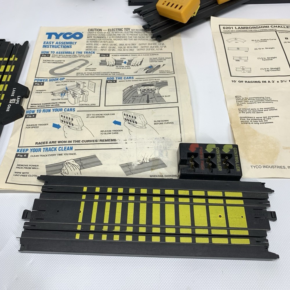 Tyco Lamborghini Challenge 6201 Slot Cars Incomplete Set Track Only No Cars Tested and working, borrowed cars from another set I will be listing at a later date to test it. No cars, or any track accessories included, comes with an extra untested straight terminal and 3 remotes. One remote the trigger sticks, other two work but one of them has something rattling around inside it. We are passing our shipping discount on to you. Thank you for Looking! We hope you will check out our other items as you never know what we may find. Our shipping might be a little more than others at times but that is because we pack things to withstand the worst that can happen to them. When you get your order in one piece and see the way it is packaged, we hope you will see why our cost to ship is higher at times than others. Materials to protect your order add weight and size to the package. We are continually looking for ways to reduce costs for you, but we will not reduce what we feel is the appropriate protection for your order. You will never get an order from us that is just tossed in a box free to move inside the box. Every order is packaged with its probably getting thrown or dropped at some point on its way to you in mind. All Clothing Items are cleaned before listing. Always open to reasonable offers.