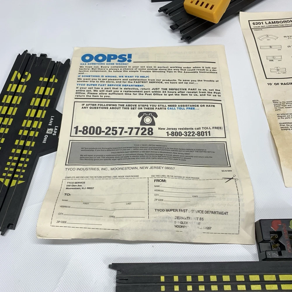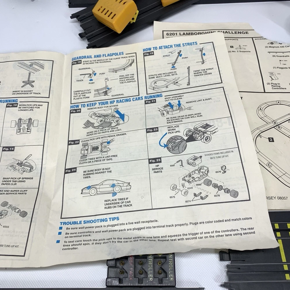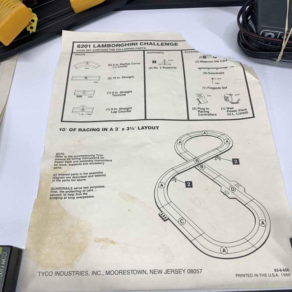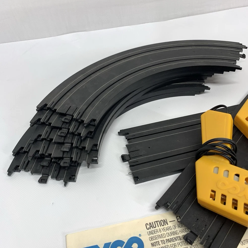 Tyco Lamborghini Challenge 6201 Slot Cars Incomplete Set Track Only No Cars Tested and working, borrowed cars from another set I will be listing at a later date to test it. No cars, or any track accessories included, comes with an extra untested straight terminal and 3 remotes. One remote the trigger sticks, other two work but one of them has something rattling around inside it. We are passing our shipping discount on to you. Thank you for Looking! We hope you will check out our other items as you never know what we may find. Our shipping might be a little more than others at times but that is because we pack things to withstand the worst that can happen to them. When you get your order in one piece and see the way it is packaged, we hope you will see why our cost to ship is higher at times than others. Materials to protect your order add weight and size to the package. We are continually looking for ways to reduce costs for you, but we will not reduce what we feel is the appropriate protection for your order. You will never get an order from us that is just tossed in a box free to move inside the box. Every order is packaged with its probably getting thrown or dropped at some point on its way to you in mind. All Clothing Items are cleaned before listing. Always open to reasonable offers.