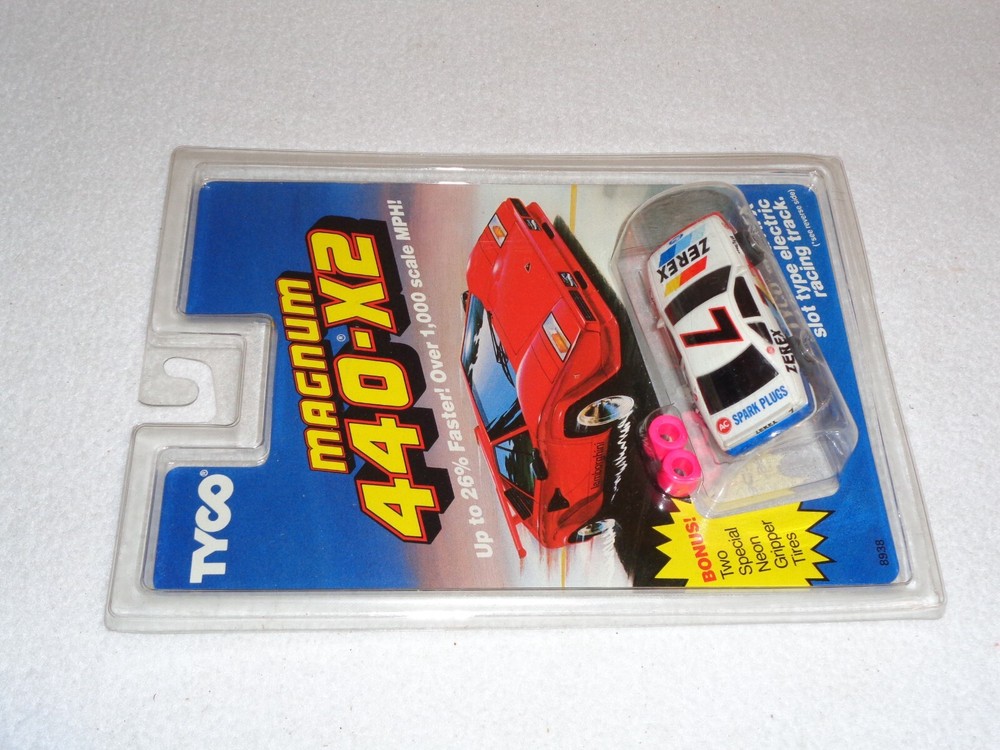 Tyco Magnum 440-X2 #7 Zerex Spark Plugs with Two Special Neon Gripper Tires #8938 1991 NEW MOC Item may have shelf wear to edges and corners. A store sticker may have been removed. Please see photos and ask any questions you may have.