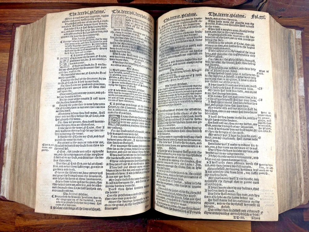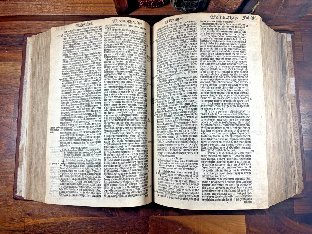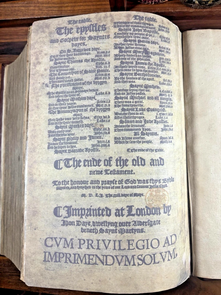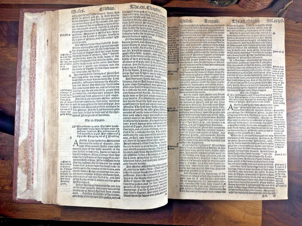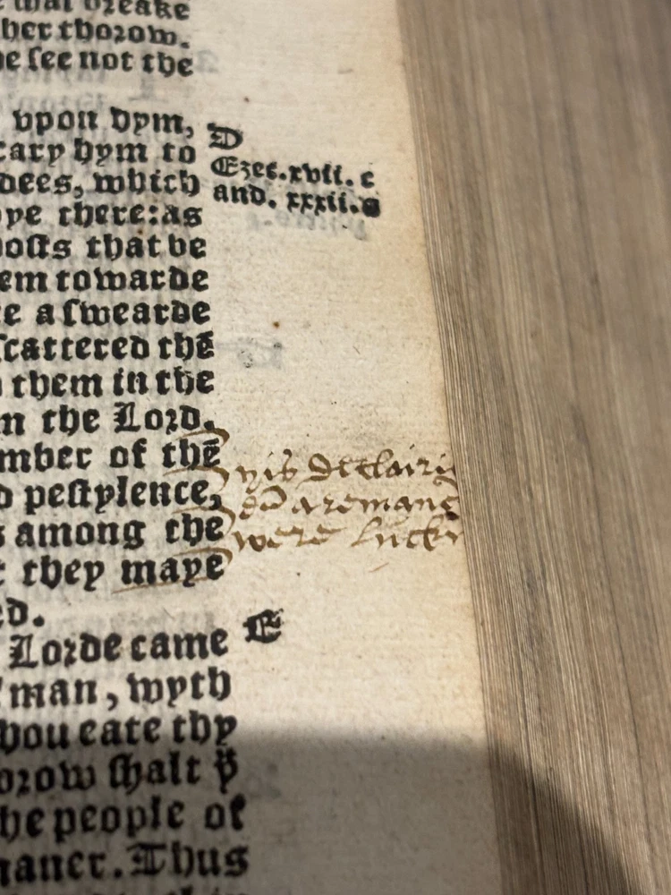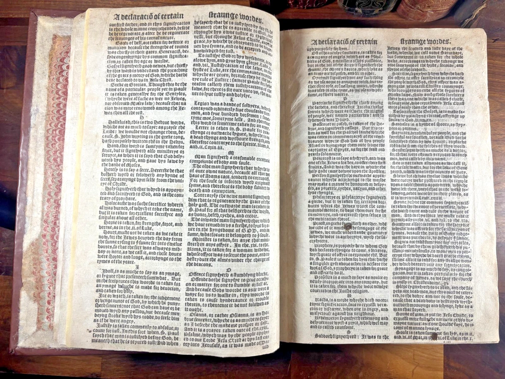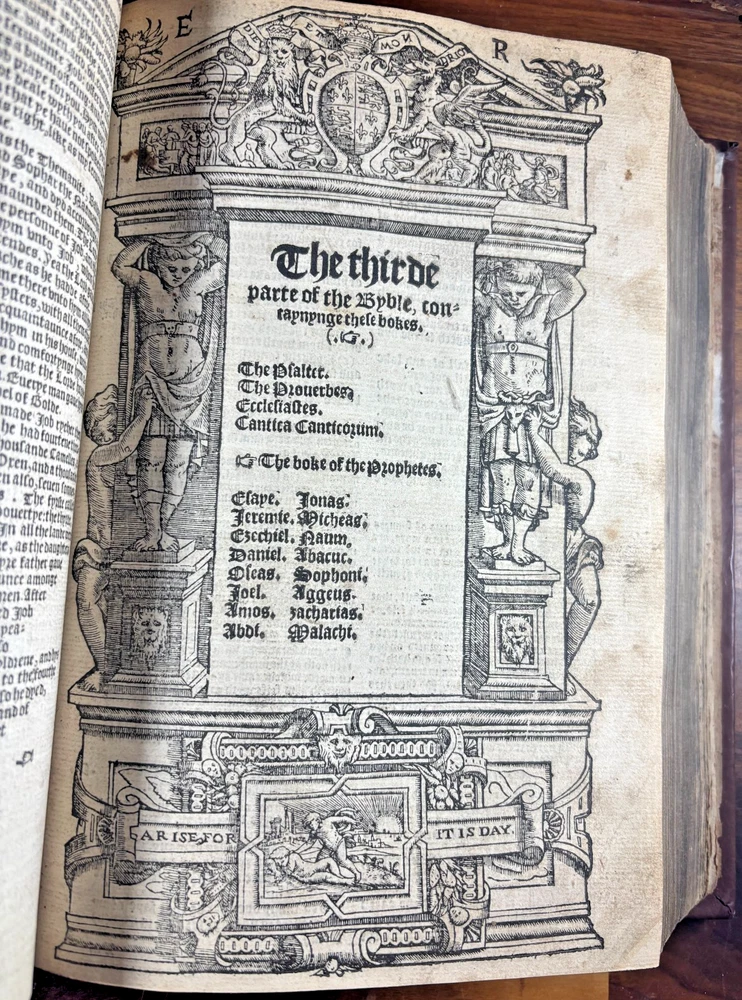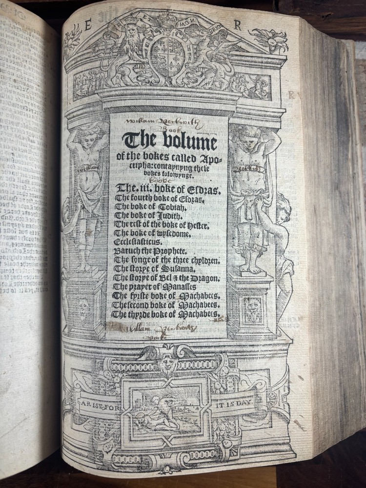 Tyndale Bible 1551 Small Folio Summary Presented for your review, a mid-sixteenth century English Tyndale small folio bible printed in London, England by John Day and William Seres. Description A large-format English bible in black-letter type, printed in London by the notable printers John Day and William Seres during the reign of Edward VI. The translation follows the Tyndale line and includes the Old Testament, Apocrypha and New Testament, each with its own woodcut title page and rich decorative elements. Text in double columns with numerous woodcut initials. Architectural borders prominently display the royal arms and the motto “Arise, for it is day.” A substantial and important edition reflecting the pivotal moment when the English bible, once forbidden, became officially supported within the Reformation. This particular bible was published during the reign of Queen Elizabeth I. It is a scarce opportunity to own a significant and rare piece of bible history. ___________________________________________________________________________________________________________________ History of the Tyndale Bible The Tyndale Bible marks one of the most decisive turning points in English religious and linguistic history. William Tyndale (c.1494–1536), educated at Oxford and Cambridge and ordained a Catholic priest in 1515, was the first to translate the New Testament into English directly from the original Greek, publishing it secretly in 1526. His mission was both spiritual and revolutionary: that every man, even “the boy that driveth the plough,” should have direct access to the Word of God. Tyndale’s translation was illegal in England; his books burned, his associates hunted but his words lived on, smuggled across the Channel and read in secret by merchants, artisans, and reformers. Arrested and executed in 1536 by the request of Henry VIII and carried out by the Holy Roman Emperor, he died praying that God would “open the King of England’s eyes.” Within a year, his prayer began to bear fruit. Tyndale’s phrasing shaped not only the Protestant faith in England but the future of English prose itself. His work provided much of the textual backbone for the Matthew Bible (1537) compiled by John Rogers, Tyndale’s friend and disciple, who later perished at the stake. Myles Coverdale’s additions and the patronage of reform-minded clerics such as Thomas Cranmer carried Tyndale’s words into the Great Bible of 1539, and later into nearly every English version thereafter. The printers John Day and William Seres, working under Edward VI, brought these texts into wide circulation, securing the place of vernacular Scripture at the heart of English worship. Through their presses, and through the testimony of figures like John Foxe, whose Book of Martyrs enshrined Tyndale’s sacrifice, the Tyndale Bible became not only a cornerstone of English Protestantism but a monument of the English language its cadences echoing still in the King James Version and the literary tradition that followed. ___________________________________________________________________________________________________________________ Collation Prelims : First 4 leaves including OT title page in facsimile. Old Testament Signatures: c2 to c6 e-i1 to e-i6 k-s1 to k-s6 (with unsigned leaves counted within gatherings) Second Section A-H1 to A-H6 K-T1 to K-T6 U1 to U3 Third Section A1 to A2 AA3 to AA6* (signature anomaly noted for bibliographic transparency) BB-II1 to BB-II6 KK-YY1 to KK-YY6 AAA1 to AAA6 BBB1 to BBB4 Books of the Apocrypha AAa1 to AAa6 BBb1 to BBb6 (BBb3 potential misprinted “BB3”) CCc-HHh1 to CCc-HHh6 JJj-OOo1 to JJj-OOo6 New Testament Aaaa-Hhhh1 to Aaaa-Hhhh6 Jjjj-Uuuu1 to Jjjj-Uuuu6 Total leaves: approximately 564 (Unsigned leaves included within gatherings; supplied facsimile prelims enumerated) Provenance / Inscriptions • Seventeenth-century marginalia in a neat early hand, chiefly in prophetic books (e.g., Ezekiel). These are short theological glosses employing the abbreviation viz. (“namely / that is to say”), clarifying passages concerning divine judgment and calamity. Example transcription: “viz. declares God’s judgment and how He scourgeth them…” Translation / sense: “Namely, this passage shows God’s judgment and how He punishes them.” Additional glosses reference themes such as pestilence, the sins of the people, and prophetic warnings, indicating active devotional study by an early reader. • Eighteenth–nineteenth-century ownership inscriptions in bold cursive, including: “John Mac…” (surname uncertain) and “James” , written across the lower margin of The Supputation of the Years leaf and lightly on the Apocrypha title page. These function as later possession notes rather than commentary. References Herbert 93 (provisional, pending final verification notes) Darlow & Moule 88 STC 2073 Condition • First four prelim leaves (including OT title) in facsimile • Rebound with a sympathetic cover approximately 20th century, retaining the earlier spine laid on • Leaves trimmed with some marginal losses near headlines • Expected toning, occasional small repairs, minor stains or edge wear • Text strong and largely clean • Woodcut initials and NT architectural border well preserved Dimensions Text block size approximately 245 mm x 155 mm Catalogue Note A highly significant mid-Tudor English bible printed during the crucial early decades of the Reformation, combining scarcity, historical value and a largely complete survival exceeding 560 leaves. ___________________________________________________________________________________________________________________ Significance and Appeal This bible is not merely a religious text but a witness to the birth of the English Reformation and the shaping of the English language itself. The editions printed by John Day and William Seres occupy a pivotal place in that history: they were among the first legally printed En