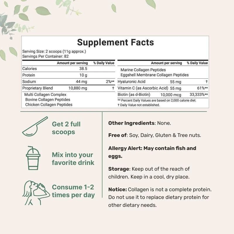 Active Ingredients: Collagen Expiration Date:: 06/2026 Main Purpose: Immune Support UPC: Does not apply Shelf life: 2 years When to Take: After Meal, After Workout, Before Meal, Before Workout, During Workout MPN: Does not apply Brand: Unbranded gtin13: Does not apply Formulation: Powder Ingredients: Collagen Features: Hydrolyzed, Organic Suitable population: adult Item Weight: 1 lb Department: Adult, Unisex, Women Product category: powder product name: Collagen powder Date of production: 2024 Storage conditions: normal temperature Applicable object: adult manufacture craft: normal Product dosage form: normal Flavor: Neutral Type: Vitamin