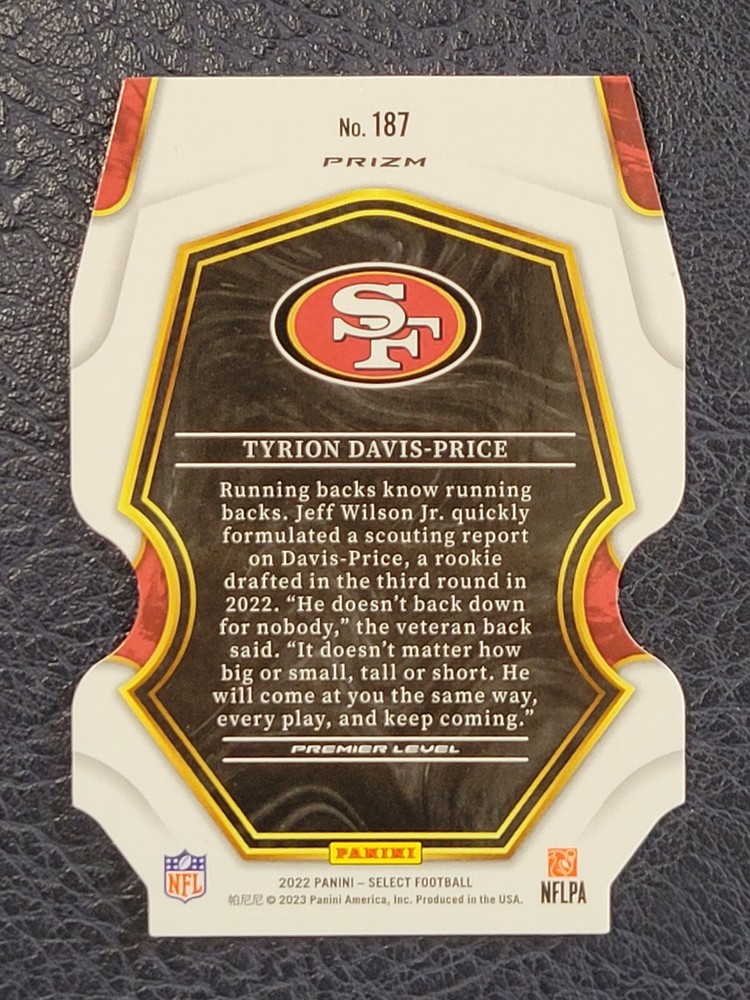 Country/Region of Manufacture: United States Type: Sports Trading Card Year Manufactured: 2023 Language: English Autographed: No Features: Insert, Parallel, Rookie Material: Card Stock Number of Cards: 2 Player/Athlete: Tyrion Davis-Price League: National Football League (NFL) Card Size: Standard Manufacturer: Panini Event/Tournament: Super Bowl Team: LSU Tigers, Philadelphia Eagles, San Francisco 49ers Sport: Football Set: 2022 Panini Donruss Optic, 2022 Panini Select Season: 2022