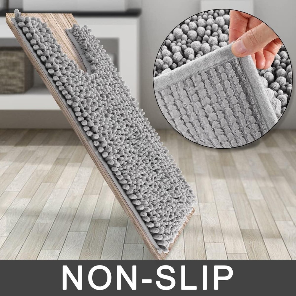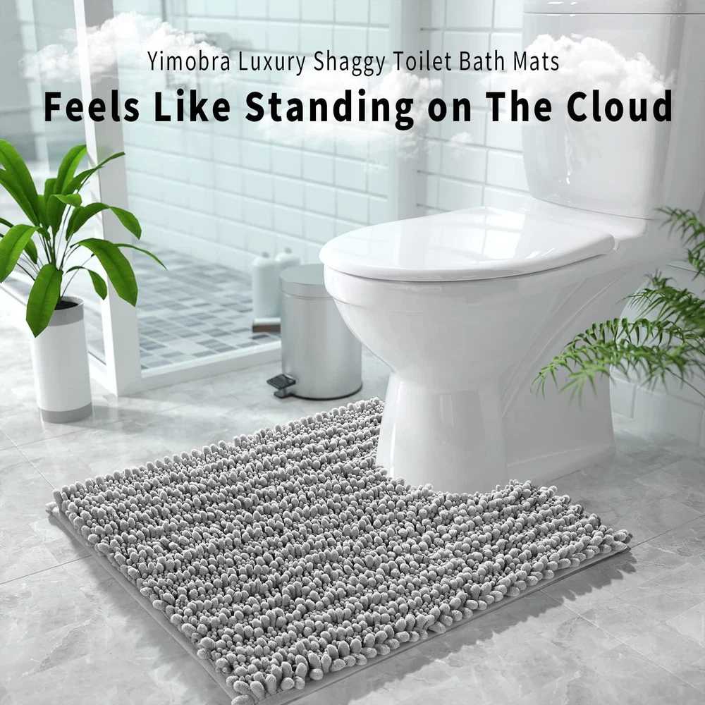 The luxury shaggy U-shaped toilet rug is the perfect addition to your bathroom accessories collection. Made of 100% ultra-soft microfiber, this contour mat is not only comfortable and supportive on your feet, but also highly absorbent and quick to dry. Its hot melt adhesive backing provides an anti-slip surface, making it a safer option for your bathroom. With various color options, this toilet rug can go with and decorate different home styles, making it a versatile bathroom accessory. Plus, it's easy to clean - simply toss it in the washing machine and tumble dry low. Its thick and well-constructed chenille material provides a cloud-like feeling underfoot, making it a must-have among bathroom accessories. Choose your favorite color and bring the clouds home with luxury chenille bathroom mats. Ultimate Cloud-Like Soft Comfort: Experience walking on clouds with our extra thick chenille bathroom mat! The ultra plush high pile density cradles your feet, banishing cold tiles after showers. It is perfect for adding warmth to any bathroom floor, transforming routine steps into luxury moments Massive Water Absorption in Seconds: 5X faster than other materials mats, bath mat absorbs 1000ml of water in 3 seconds. The vertical fiber channels lock moisture away from the surface, keeping your bathroom floor dry and discouraging damp environments. Perfect as a shower exit guard or sink splash catcher Total Grip Safety & Quick Dry: bath rug features a feather-light yet ultra-grippy hot-melt backing that stays firmly in place on wet surfaces. Its vertical air-channel chenille fibers ensure rapid and complete dryness, providing instant dry safety the moment you step out of the shower. The product is tested for harmful substances, performance, longevity, and emissions in accordance with the OEKO-TEX Standard 100 Fade-resistant & Easy Care: Crafted with a flexible hot-melt adhesive layer, our shower rug withstands over 100 rigorous machine washes without cracking—unlike brittle TPR, which deteriorates after just 10 cycles. It retains vibrant colors wash after wash,while the plush pile rebounds effortlessly, maintaining "Day 1" freshness. Simply toss it in the washer weekly—no hassle, no fading, no worries Multi-Scene Versatility: bath rugs offer full-scene adaptability, with 20+ colors and 10 sizes designed to complement any bathroom decor. Choose space saving rugs for small areas to cover sink wet zones, oversized rugs for large bathrooms offering full-area protection from bathtubs to vanities, while contour rug designs frame toilets. These rugs also serve as decorations: muted tones create spa calm, while bold colors like Coral energize kids' baths
