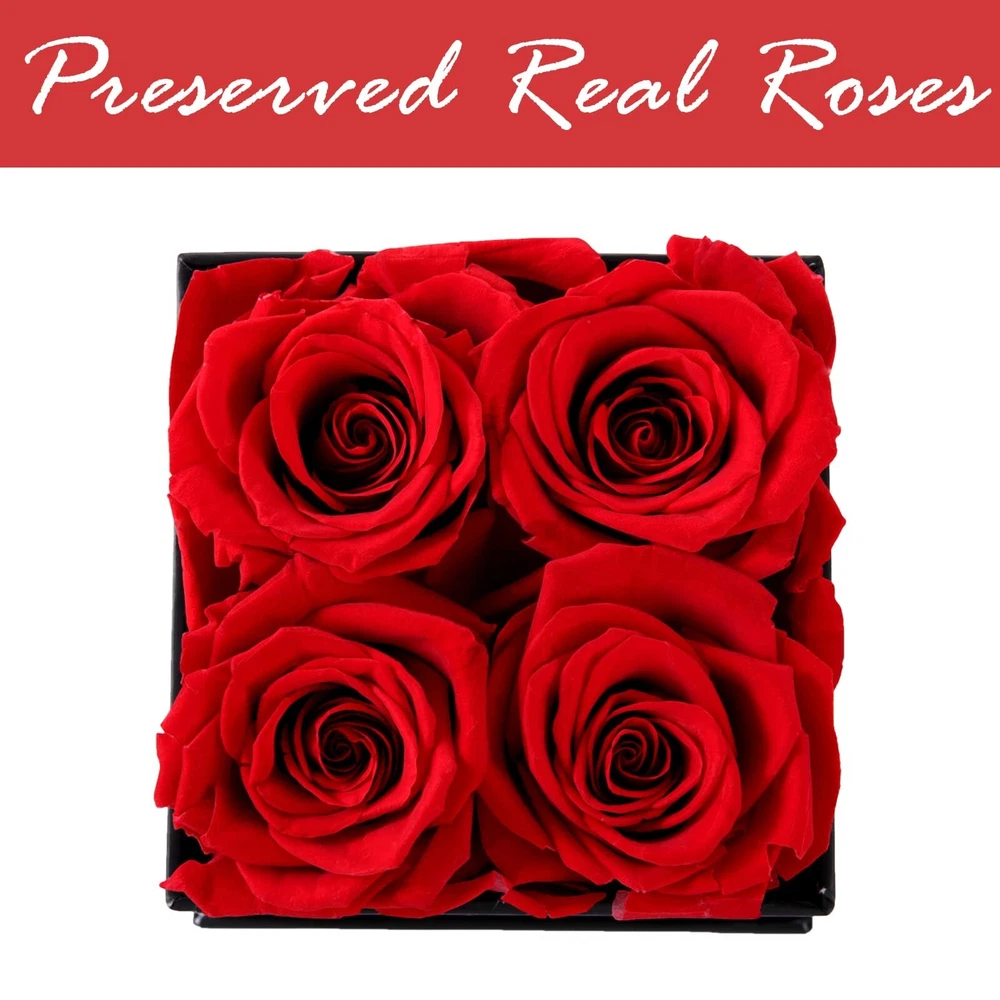U UQUI Rose Flowers for Mothers Day, Forever Preserved Rose in A Box with Necklace, Real Fresh Eternal Rose Mothers Day Flower Gifts, Anniversary Birthday Mother’s Day Rose Gifts or Decorations Product Details Color: 4 Roses-red Brand: U UQUI MPN: Does not apply UPC: Does not apply EAN: Does not apply Package Dimensions: 6.18 x 5.16 x 4.53 inches Item Weight: 10.5 ounces Manufacturer: U UQUI Batteries required: No U UQUI Mothers Day Gift Set: As a brand that deeply cultivates flower gifts, preserved flowers set is the unique mothers day gift you've been looking for. 4 red roses in square box instead of rose bouquets are more ornamental and gift-like. Ruby necklace adopt heart design radiates dazzling light. The black gilded greeting card u uqui prepared for you to help express your sincerity. Mothers Day Roses That Last Years: Eternal roses are real flowers, all selected from premium fresh roses, through fresh cut flowers, dried, kept fresh by special crafts and finally packed into designed gift boxes, deeply loved by rose lovers. No need for watering, no need for light, you just need to enjoy it, mothers day flowers in box have a lifespan of 2~3 years. Perfect Mothers Day Gift Ideas: Preserved rose with necklace satisfies the dual gift attributes of roses and jewelry, except as anniversary or birthday gifts for women, with Mothers Day approaches, forever roses and heart necklace set can be as expecting mothers day gifts for mom wife daughter girlfriend or someone you loved. As Mothers Day Decorations: Application in Mothers Day decoration is another identity of eternity roses as mothers day presents. You can make these immortal roses as mothers day home decor room decor table decor. In addition, eternal flowers are also popular in romantic wedding decorations or proposal decorations. Additional Notes: U UQUI preserved roses mothers day are non-toxic and fragrance-free, if you want the forever flower to be scented, you can pour a little perfume or essential oils into the bottom of the rose box. With careful care, preserved roses that last a year, 2 years, 3 years, or even timeless, to be ever gifts and decorations.