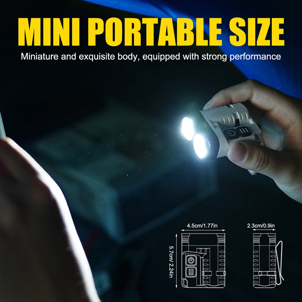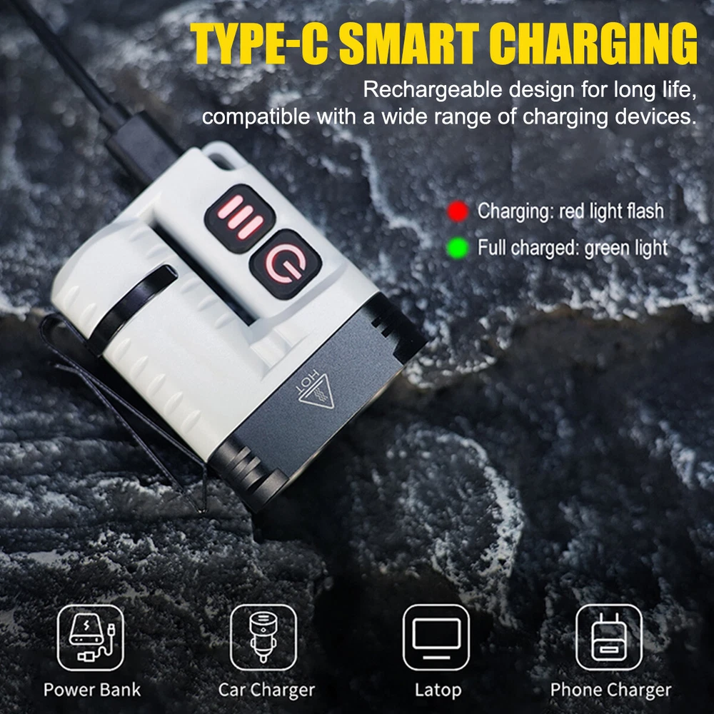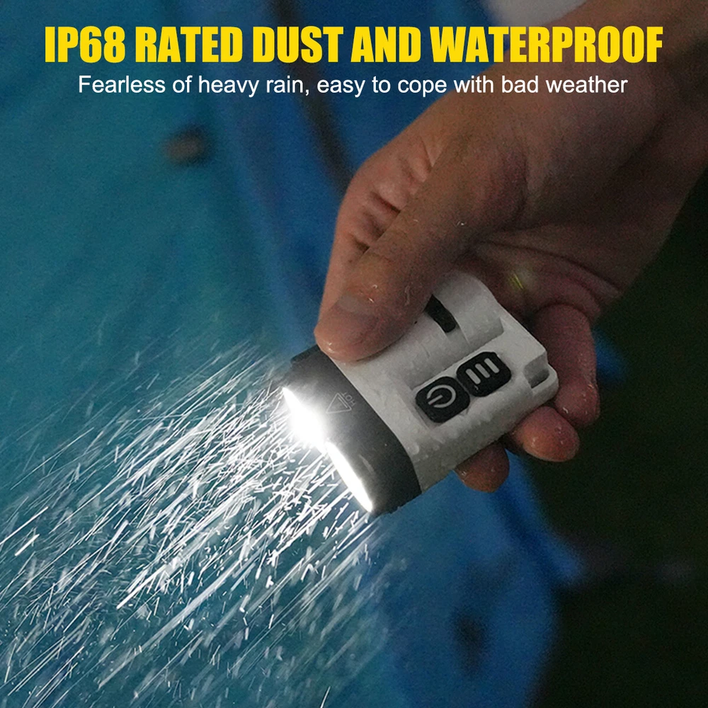 Charging Port Type: Type-C Power Source: USB Number of LEDs: 2 Charging Voltage: 5V1A Item Height: 2.24in Color: White Voltage: 4.2V gtin13: Does not apply Features: Batteries Included, Clip On, Handheld, Magnetic, Multiple lighting modes, quick switch functions, Rechargeable, Waterproof, With Wrist Strap Item Length: 1.77 in Type: Flashlight Color Temperature: 6500-7000K Lighting Technology: LED CRI: 75 Charging Time: 2.5 hours Number of Batteries: 1 Power: 20W Material: Aluminum Item Weight: 4.55 oz Brand: Unbranded Item Width: 1.20 in UPC: Does not apply Operating Range: 260m