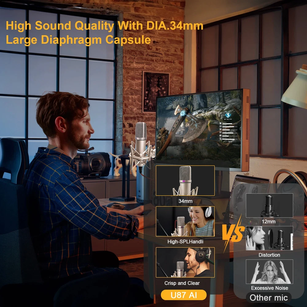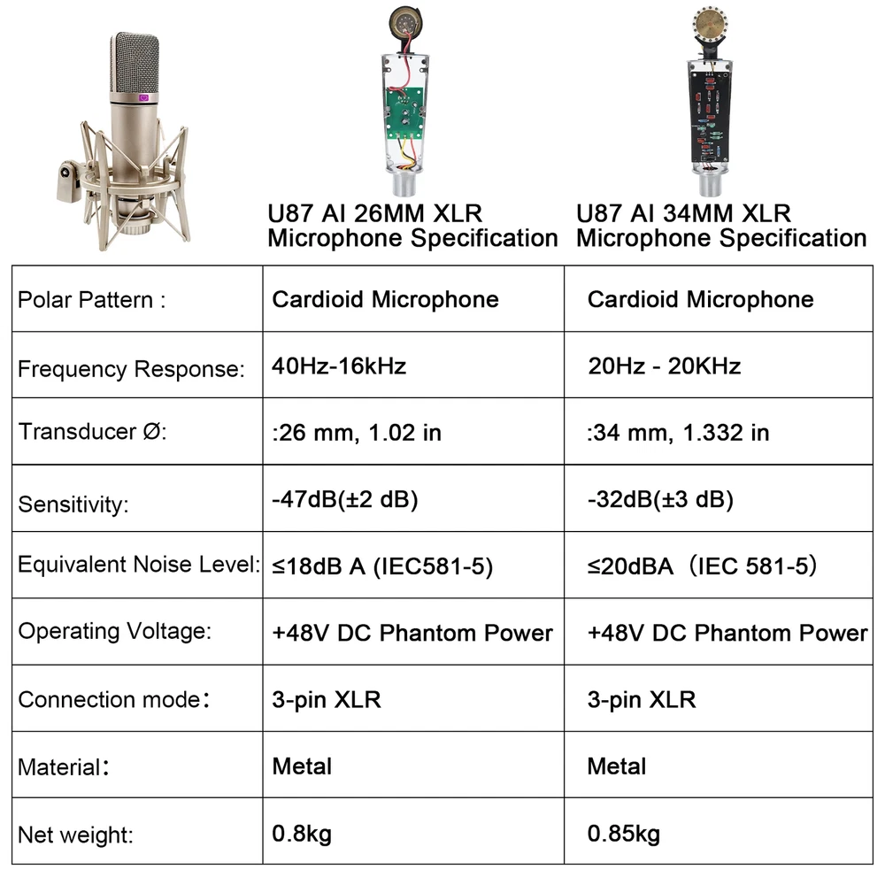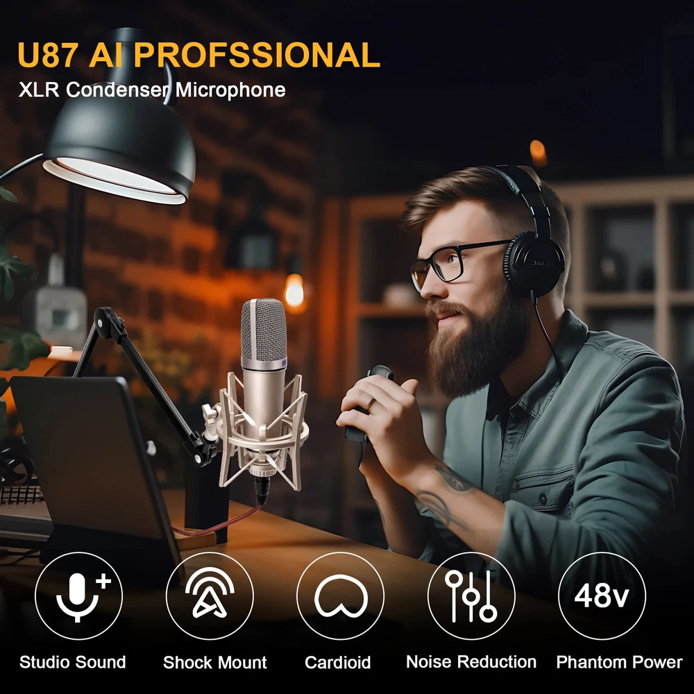 U87 AI XLR Condenser Microphone Professional Cardioid Studio Mic for Recording
