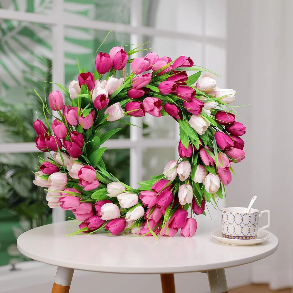 MPN: Does not apply UPC: Does not apply gtin13: Does not apply EAN: Does not apply Brand: U'Artlines Color: Pink Product: U'Artlines 20 Inch Tulip Wreath for Front Door, Spring Summer Sil