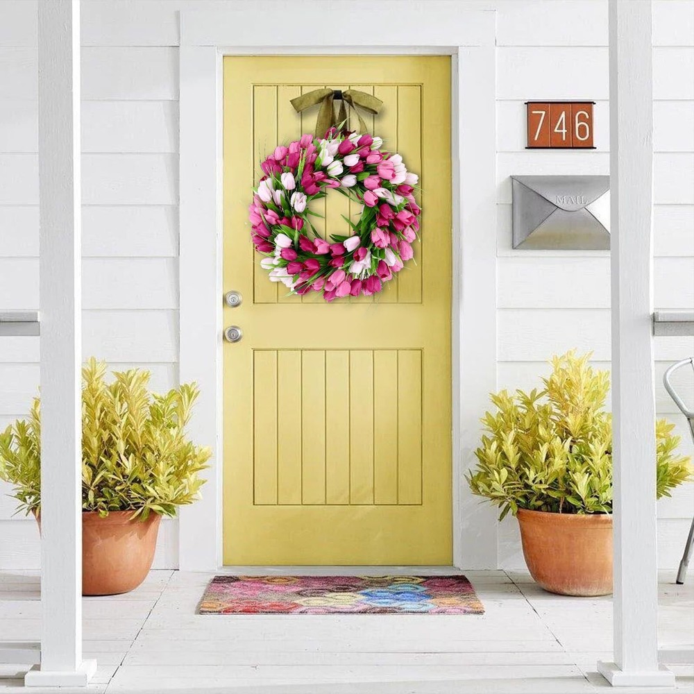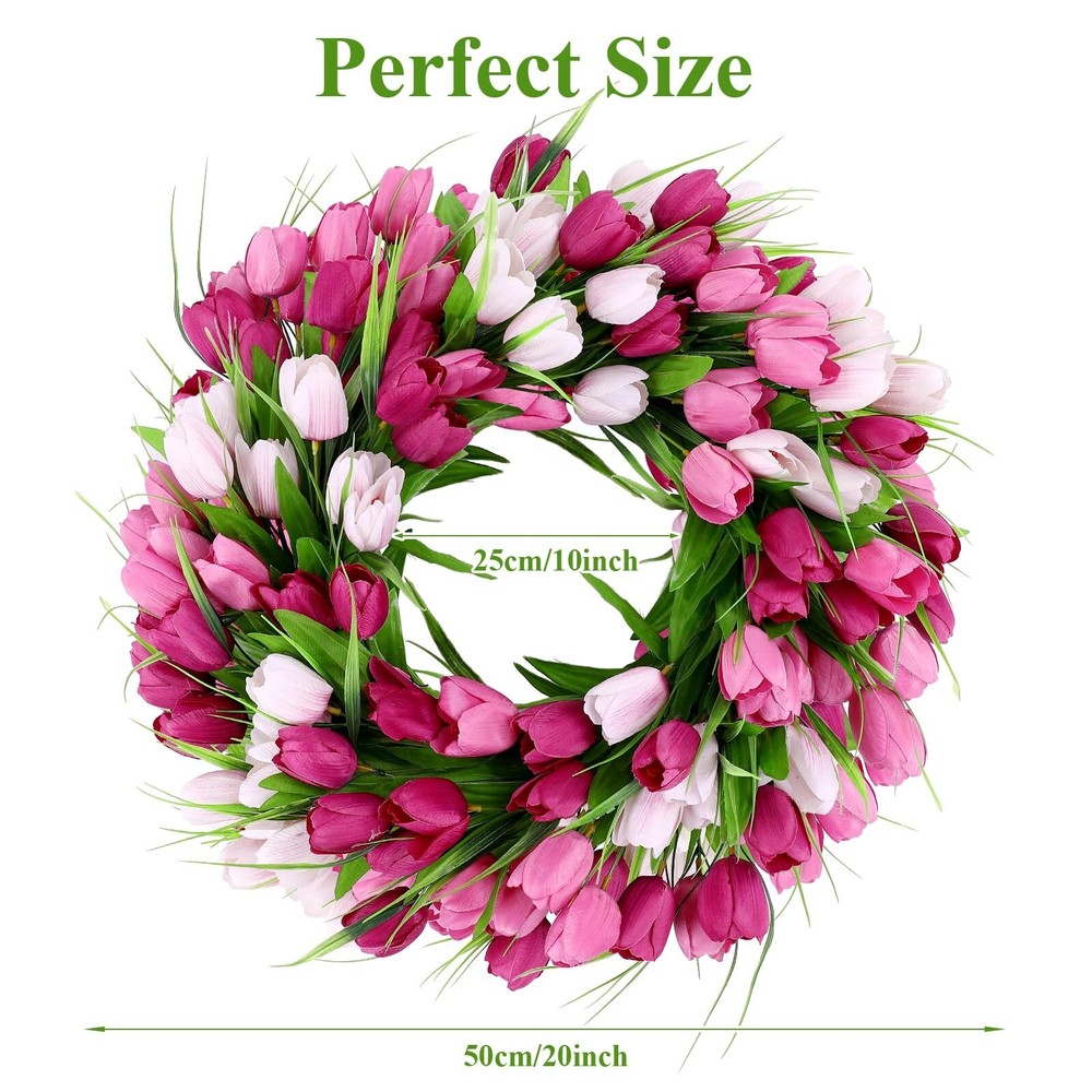 U'Artlines 20 Inch Tulip Wreath for Front Door, Spring Summer Silk Wreath wit...