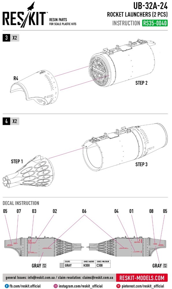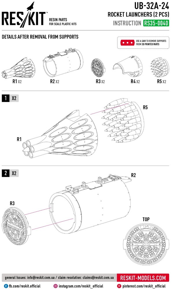 UB-32A-24 rocket launchers (2 pcs) (Mi-24, Mi-8) (3D Printed) ResKit RS35-0040 - for Plastic Model Kit Enhance Your Scale Models with ResKit | High-Quality Resin & 3D-Printed Accessories RESKIT - Accessories for Scale Plastic Kits Upgrade your scale model collection with high-quality resin parts from ResKit. Our Ukrainian-made parts are meticulously crafted to provide the most accurate and detailed representation of original components. Whether you're building aircraft, helicopters, military vehicles, or figures, ResKit has the perfect parts to enhance your project. Scale: 1/35 Manufacturer: RESKIT (Accessories for Scale Plastic Kits) Country/Region of Manufacture : Ukraine Condition : New in Box Category: Resin & 3D accessories Type of equipment : Helicopters Type of product: Arms and weapons Recommended kit: Any UB-32A-24 rocket launchers (2 pcs) for model kit: Mi-24 Mi-8 ResKit is a Ukrainian manufacturer of high-quality resin parts and accessories for scale models . The products are distinguished by a high level of detail and accuracy, which allows modelers to create the most realistic models of military equipment, aviation and other objects. Key Features: Premium Quality: Our resin parts are made with the finest materials and precision engineering. Extreme Detail: Experience unparalleled detail and realism in your models. Wide Range: Choose from a vast selection of parts for various scales and subjects. Easy to Assemble: Our parts are designed for easy integration into your existing model kits. Superior quality! ResKit parts allow you to create a model with incredible detail. ---------------------------- >>> Visit our eBay store! <<< You will find everything you need at great prices. Scale model accessories are a wide range of parts, spares, and components that can help you make your model even more realistic and detailed. In our catalog, you will find everything you need to assemble and repair model cars, airplanes, ships, tanks, and weapons. Our accessories are made from high-quality materials and meet all standards. We offer a wide range of models and sizes so you can find what you need. Buy scale model accessories in our store and make your model even more unique!