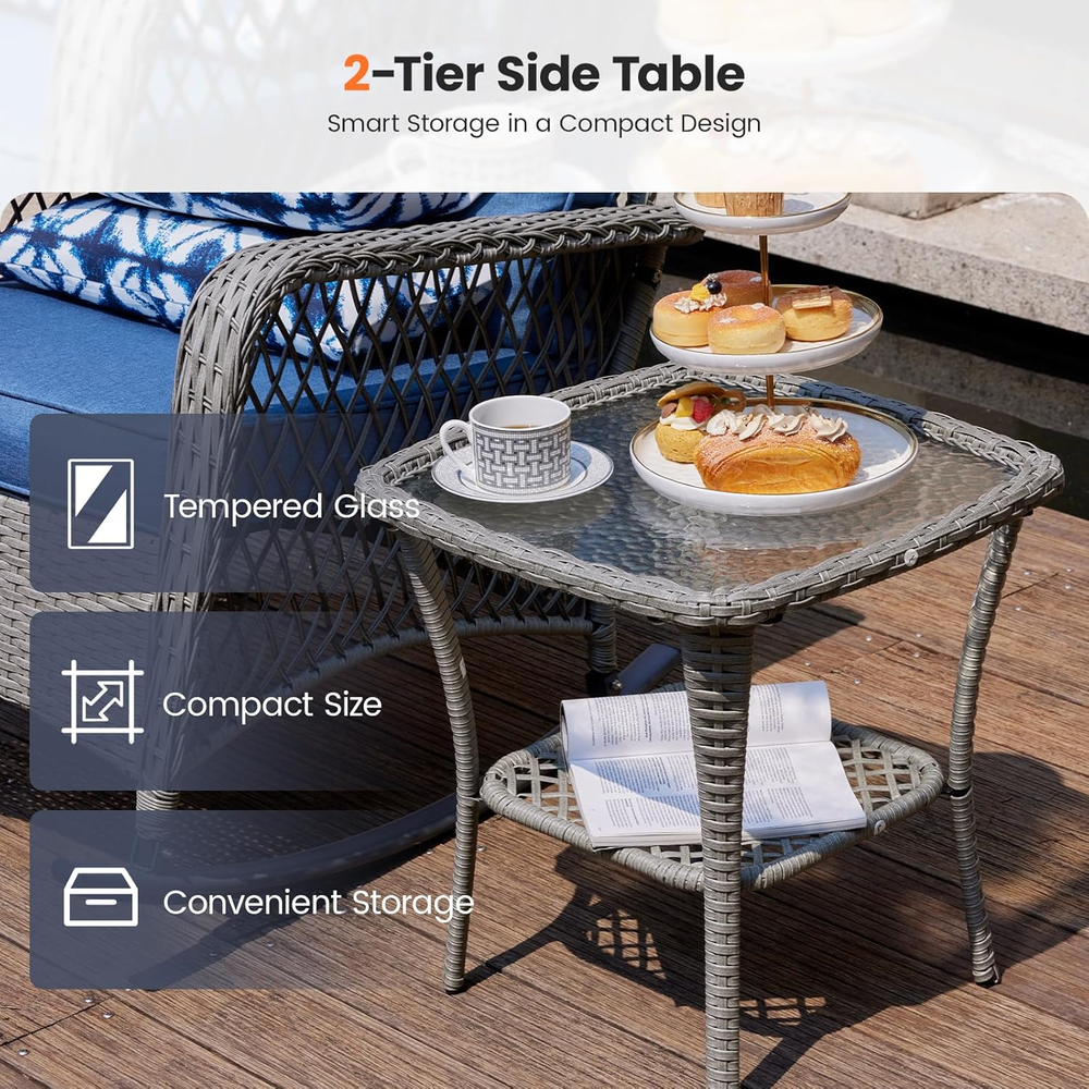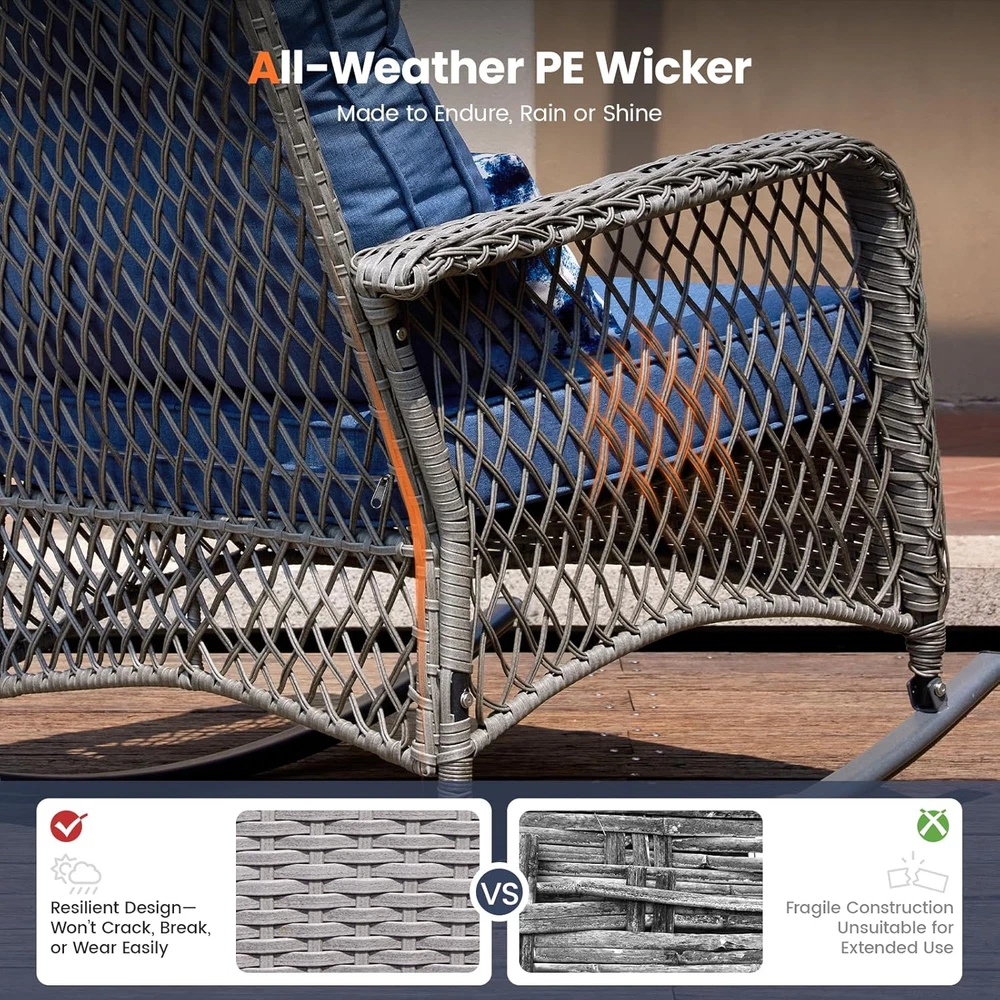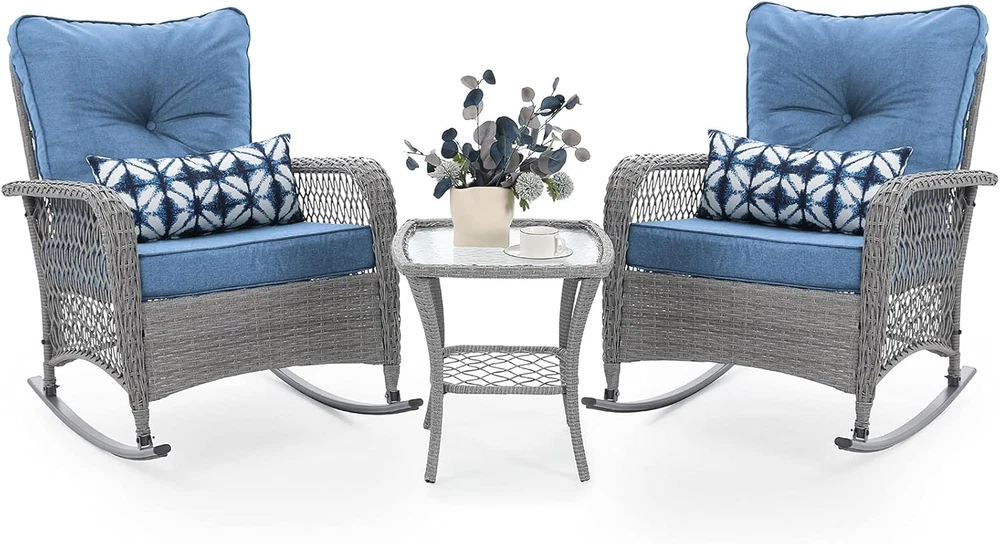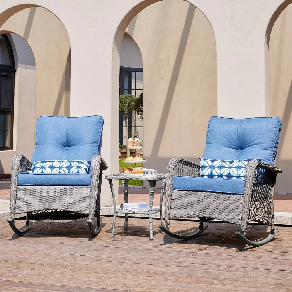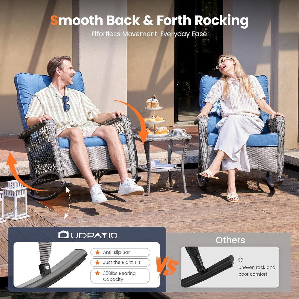 UDPATIO 3 Piece Patio Furniture Set, Wicker Rocking Bistro Set with 2 Rockers, 1