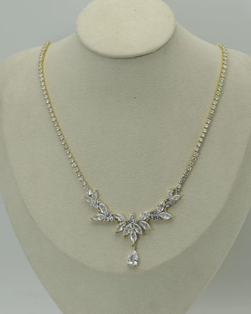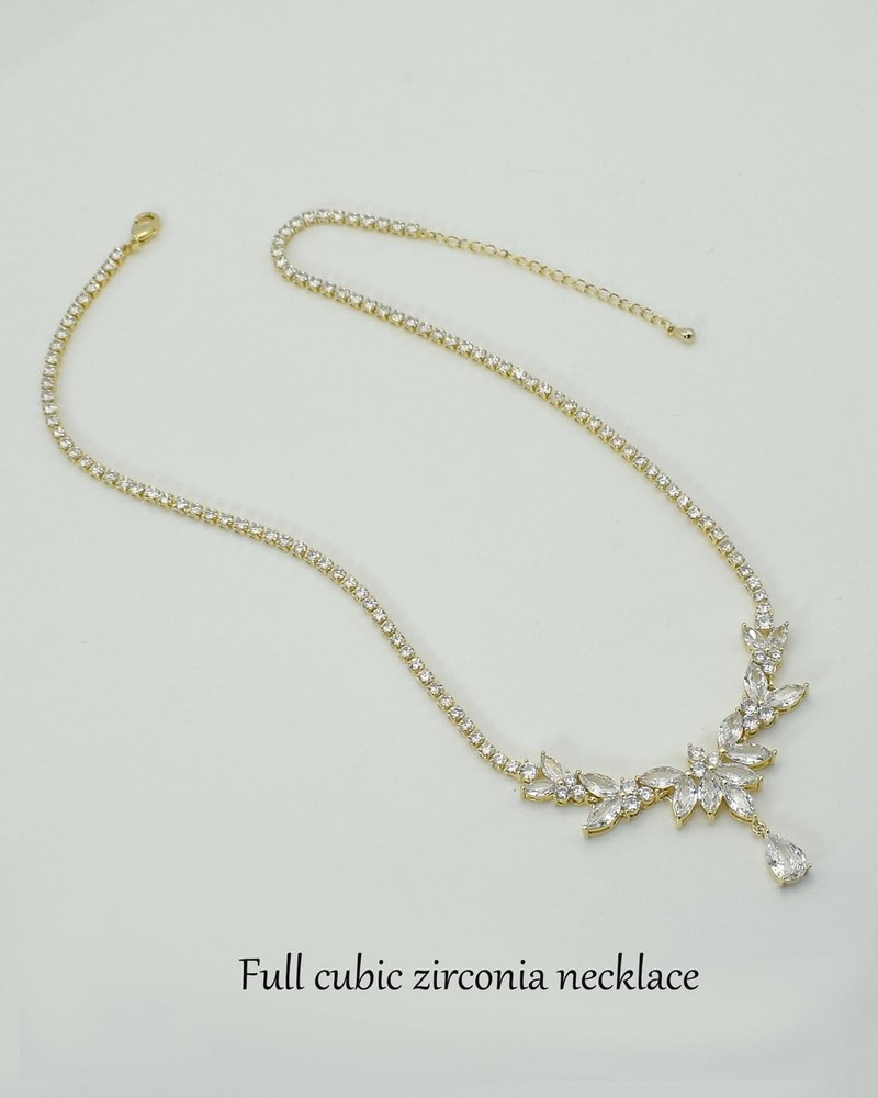 UDYLGOON Cubic Zirconia Crystal Wedding Necklace Earrings Jewelry Set for Bride Bridesmaid Prom Homecoming Product Details Color: Gold Brand: UDYLGOON UPC: 757603604677 EAN: 0757603604677 MPN: Does not apply Package Dimensions : 3.54 x 3.54 x 1.18 inches; 2.12 ounces Department : womens Date First Available : January 12, 2024 Brand, Seller, or Collection Name: UDYLGOON Metal: gold plated copper Material: Copper Gem Type: Cubic Zirconia Chain: Curb Clasp: Lobster Clasp
