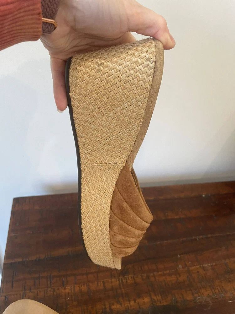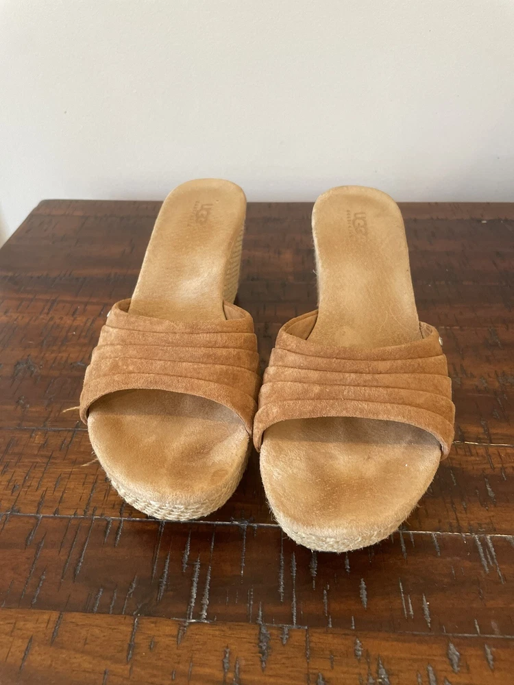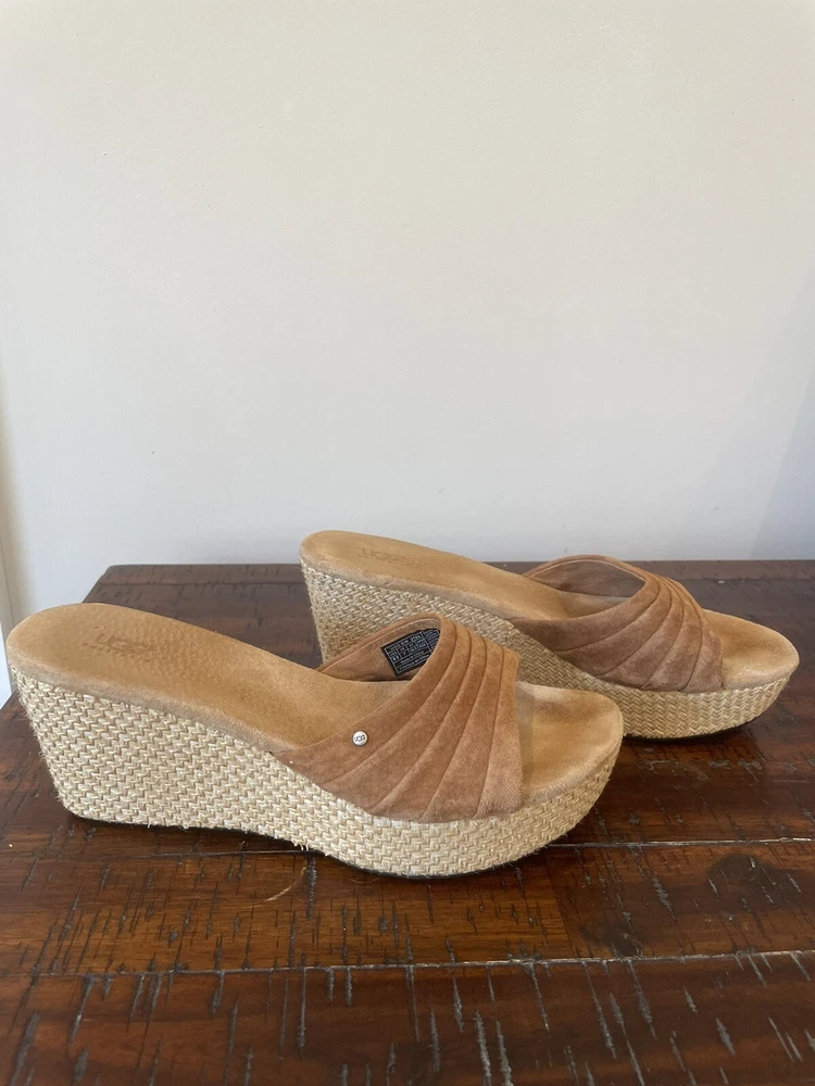 UGG 8.5 Sandal Espadrille Wedge Eirene Brown Slides Suede