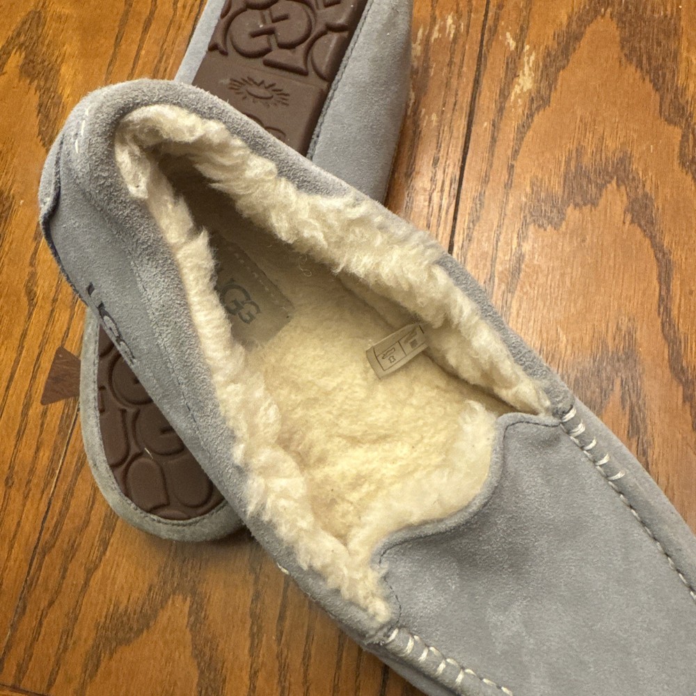 The UGG ANSLEY Women’s Suede Moccasin Slippers in Light-Gray, Size 11, are a stylish and comfortable option for women looking for a versatile slipper. Made with high-quality suede and featuring a sheepskin lining and shearling fabric type, these slippers provide warmth and cushioning for ultimate comfort. The flat heel and medium width make them perfect for casual wear or travel during the winter and fall seasons. The classic moccasin style with logo accents adds a touch of sophistication to these cozy slippers from UGG Australia.