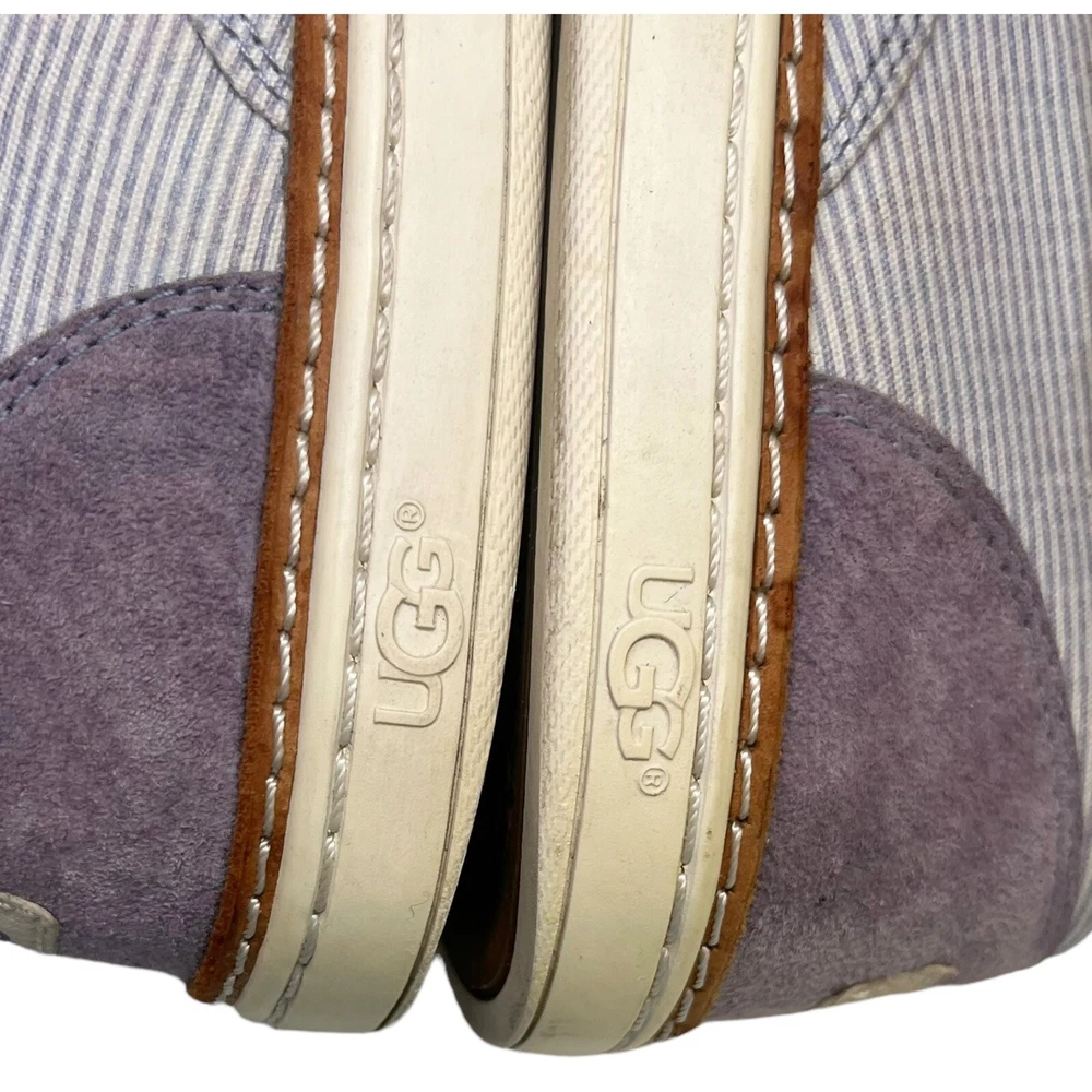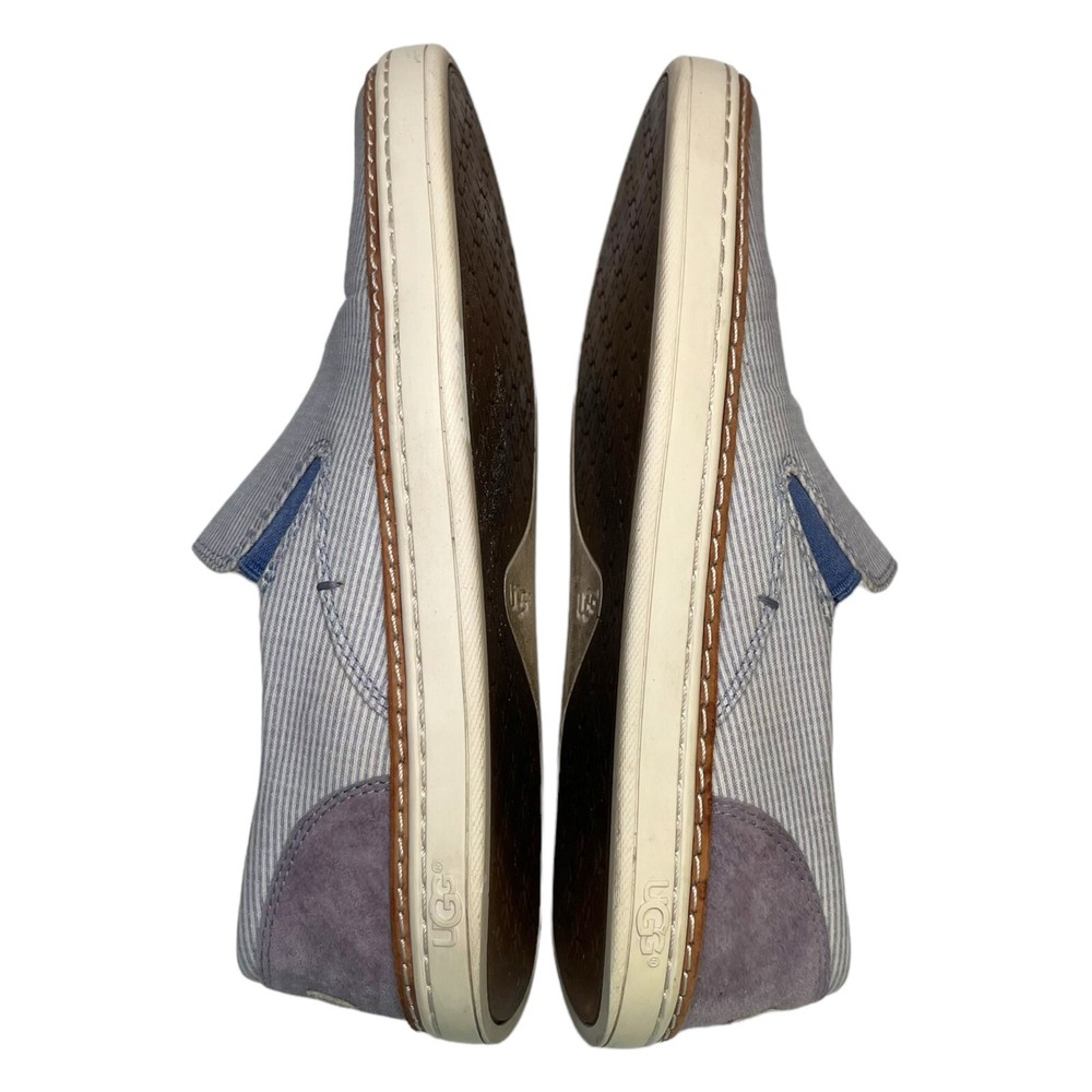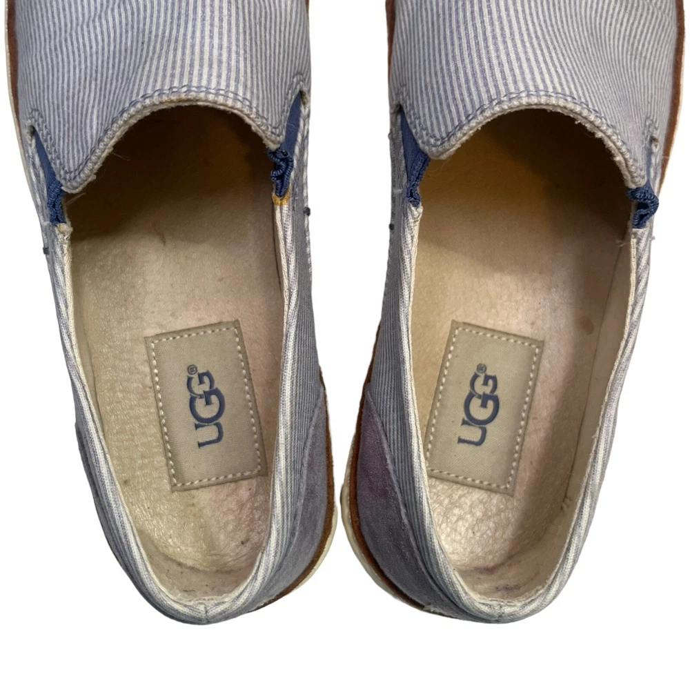 Elevate your casual style with these UGG Australia Adley Boat Shoes. Featuring a blue and white striped canvas upper and a comfortable slip-on design, these sneakers are perfect for everyday wear. The cushioned insole offers all-day support, making them great for travel, errands, or laid-back outings. Brand: UGG Australia Style: Adley Boat Shoes / Slip-On Sneakers Size: Women’s Size 6.5 Color: Blue & White Striped Material: Canvas Upper, Rubber Sole Features: Slip-On Style, Cushioned Insole, Casual Comfort Condition: Pre-owned; normal signs of use including dirt, discoloration, and surface wear. Shoes have been wiped down but some dirt remains. No box or dust bag included. Please inspect all photos for condition details. Style Tags: casual shoes, striped sneakers, canvas, slip-on, UGG, travel shoes, comfort wear