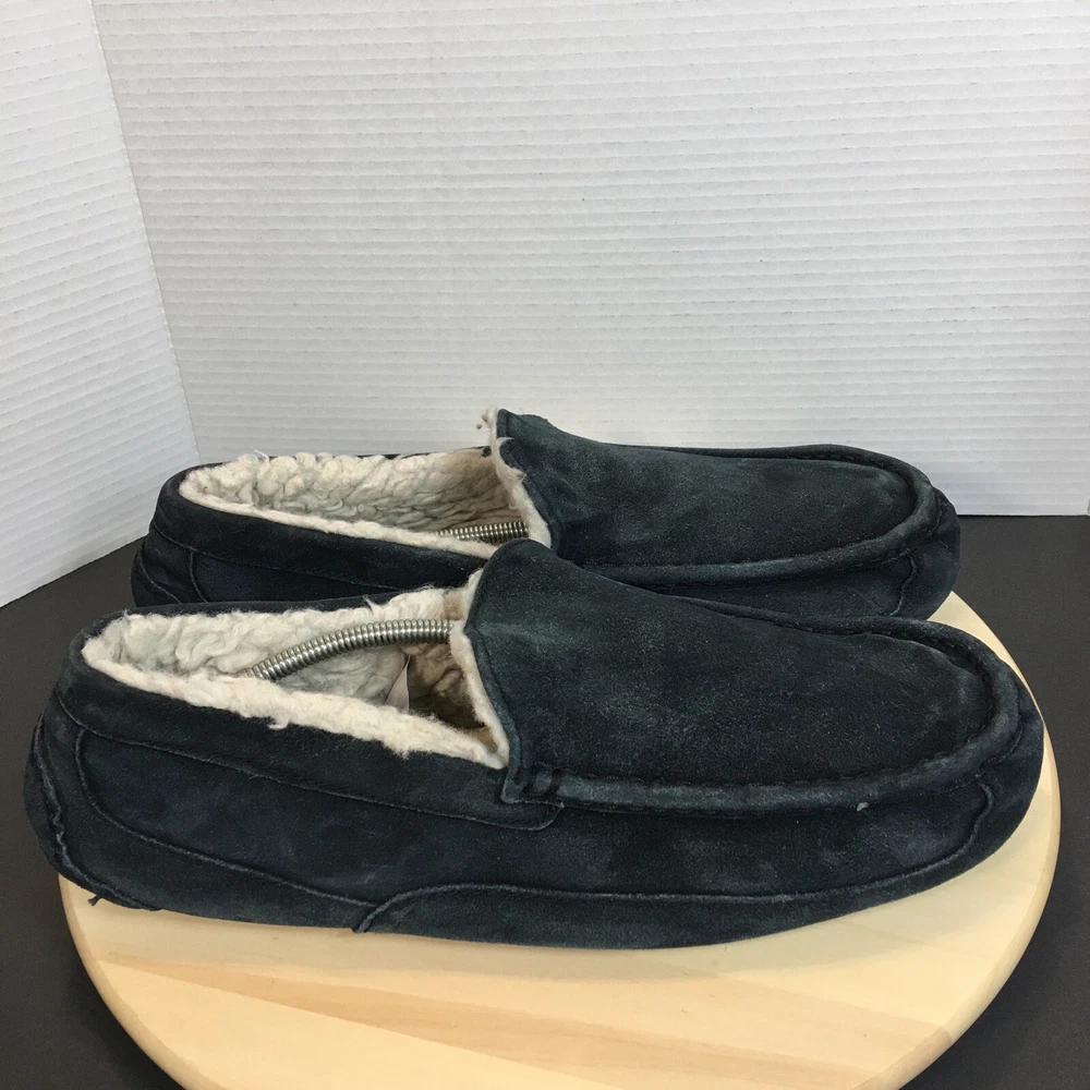 UGG Ascot Men's Slippers Shoes Size 16 Sheepskin Lined Suede Black Tbo#024