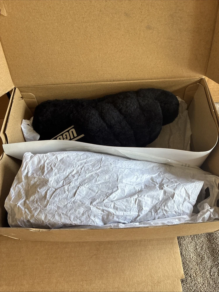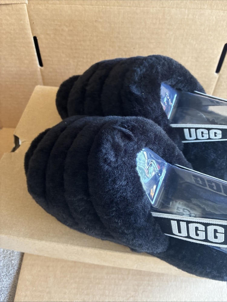 UGG Australia Fluff Yeah Women's Slide Slipper, Size 8 Black. Condition is Pre-owned - Good. Shipped with USPS Ground Advantage.