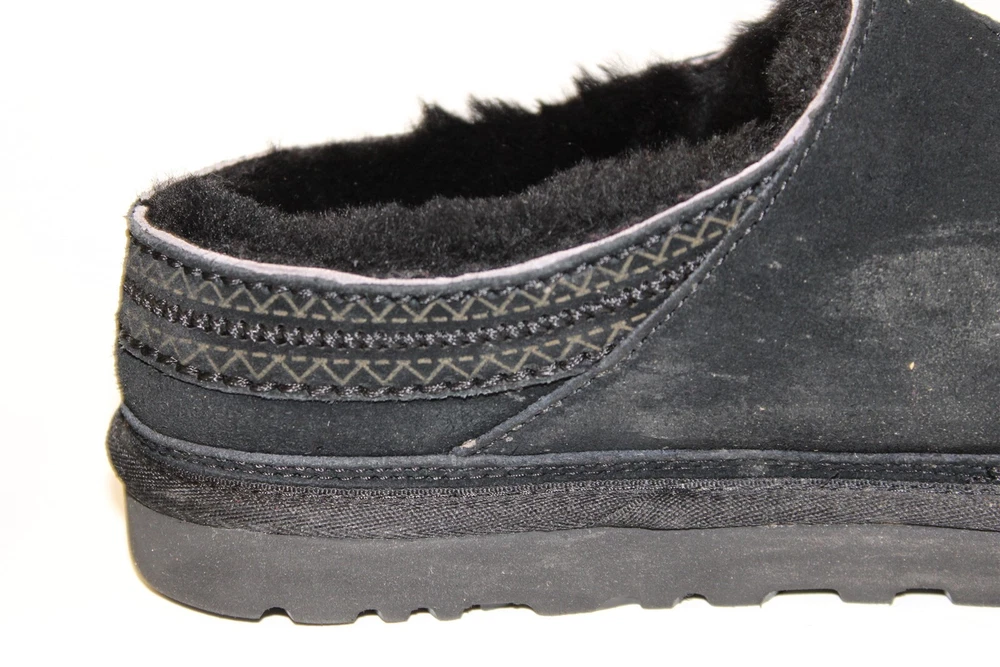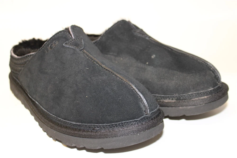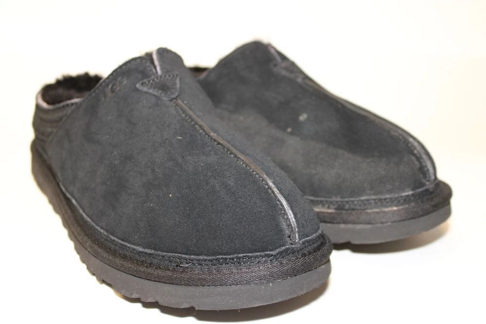 UGG Australia Neuman Mens Size 11 44 Black Sheepskin Slippers Shoes 1113631