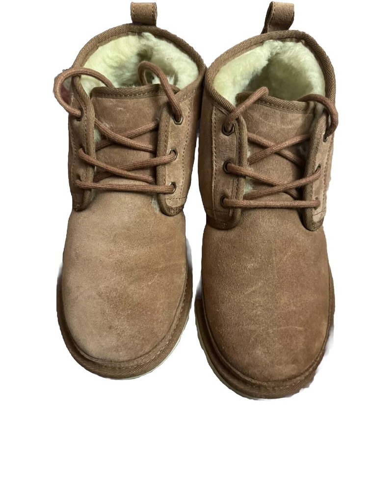 UGG NEUMEL CHESTNUT / SUNNY LIME SUEDE SHEEPSKIN WOMEN'S BOOTS SIZE US 7 NEW. Condition is New with box. Shipped with USPS Priority Mail. UGG WOMEN'S NEUMEL SUEDE SHEEPSKIN CASUAL CHESTNUT/SUNNY LIME ANKLE BOOTS NEW 100% AUTHENTIC COLOR: CHESTNUT/SUNNY LIME SIZE: US 7 STYLE: #1094269 MSRP: $130.00 Enjoyed rugged, outdoor sensibility with legendary UGG® comfort. FEATURES Full grain leather or suede upper with a traditional lacing system for easy on-and-off wear. Fully lined in luxurious, UGGpure™ wool. It's a luxurious, natural wool woven into a durable backing that enhances the overall product experience. UGGpure™ delivers a plush sensory experience with every wear. Generously cushioned footbed is lined in UGGpure™ wool. Lightweight and flexible low profile EVA outsole delivers long-lasting durability. Imported