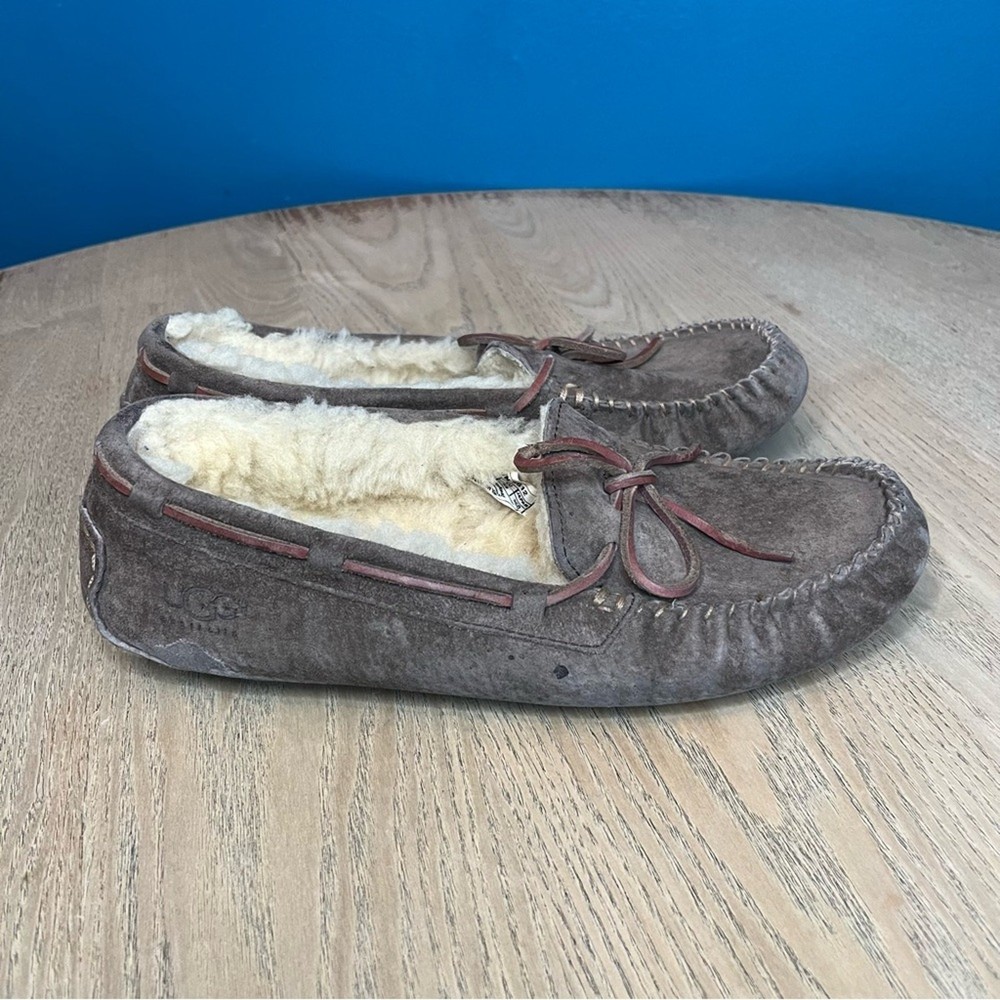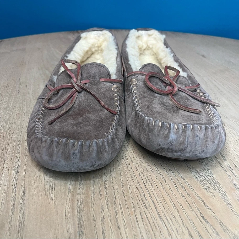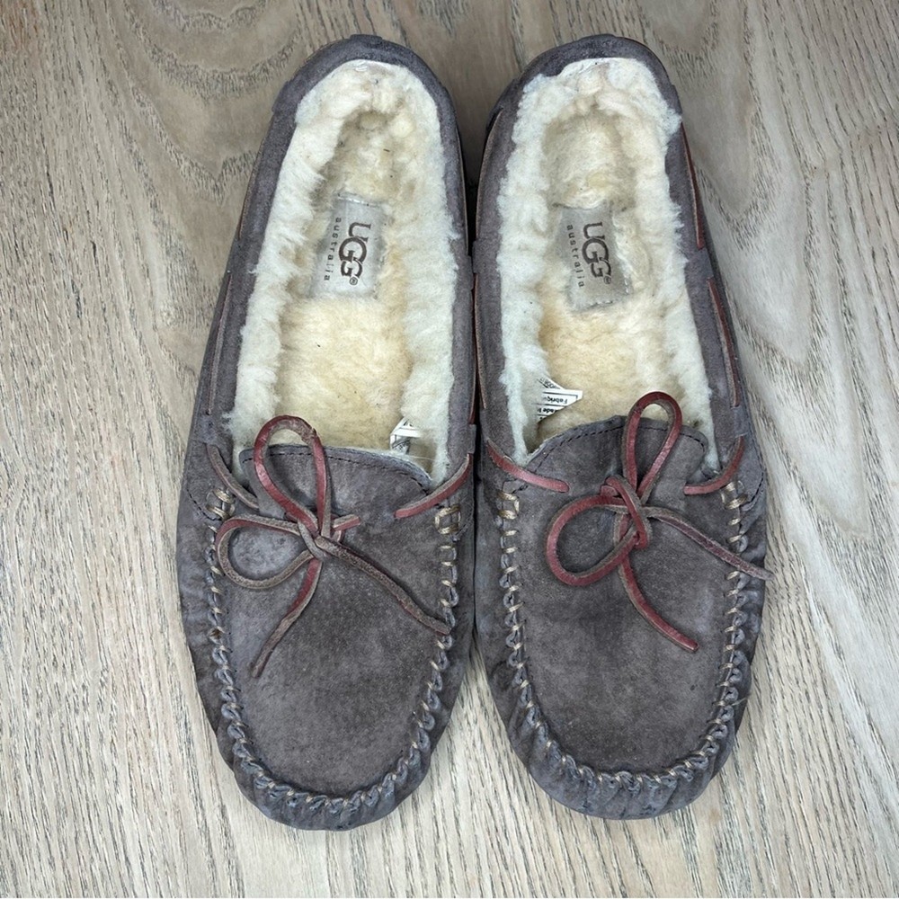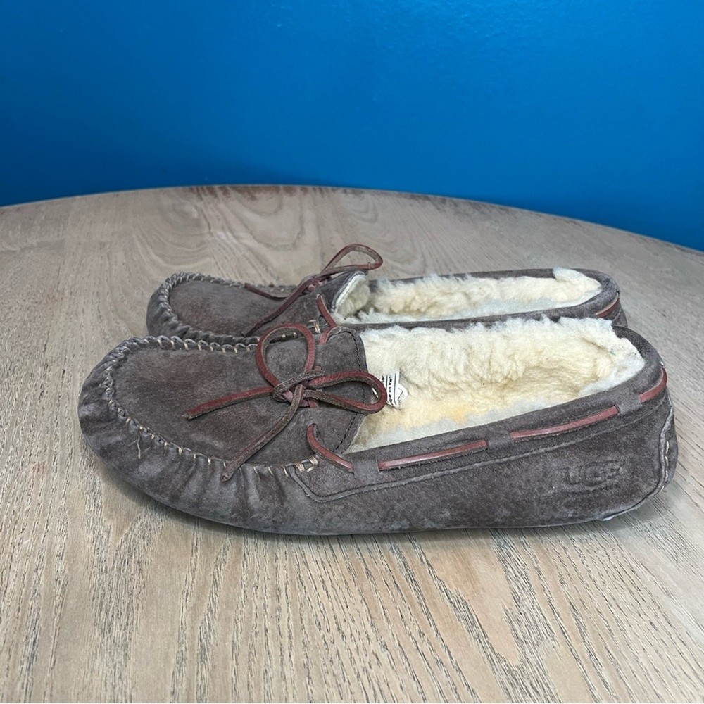 UGG Dakota Espresso Brown Sheepskin Lined Moccasin Slippers Women’s Size 8 Please review all photos!