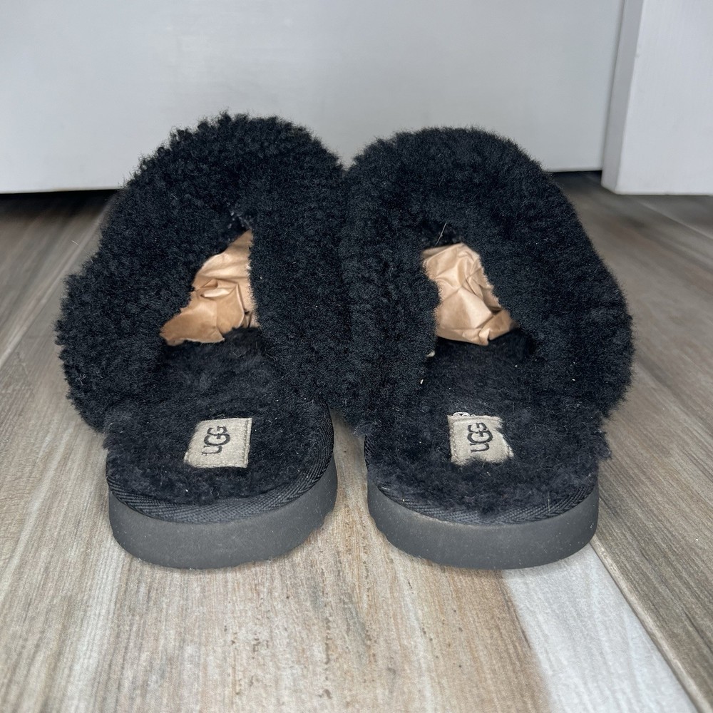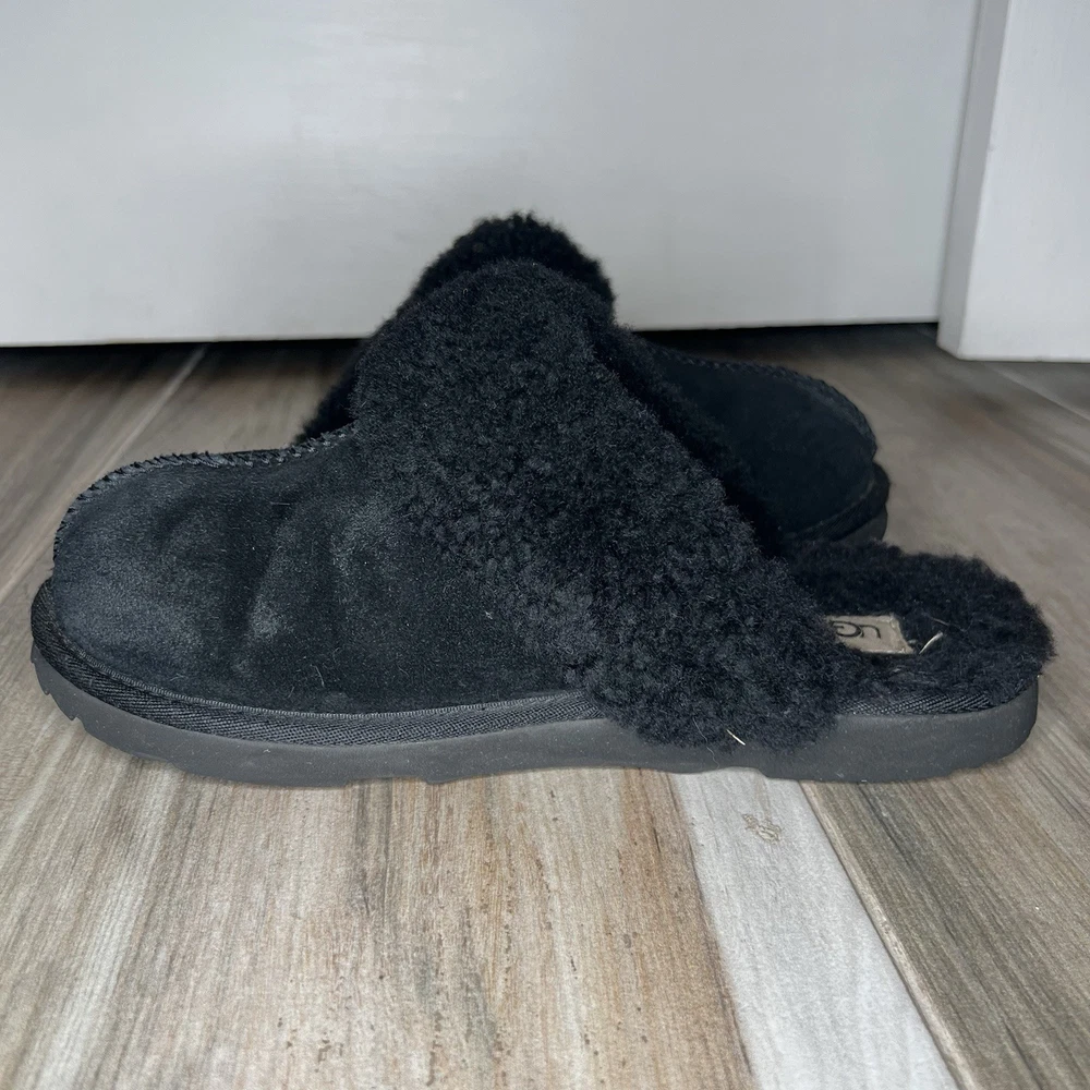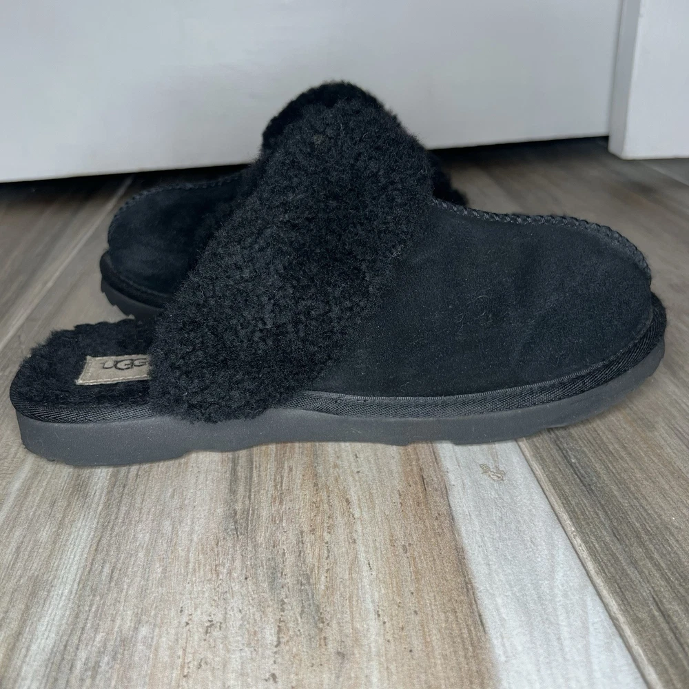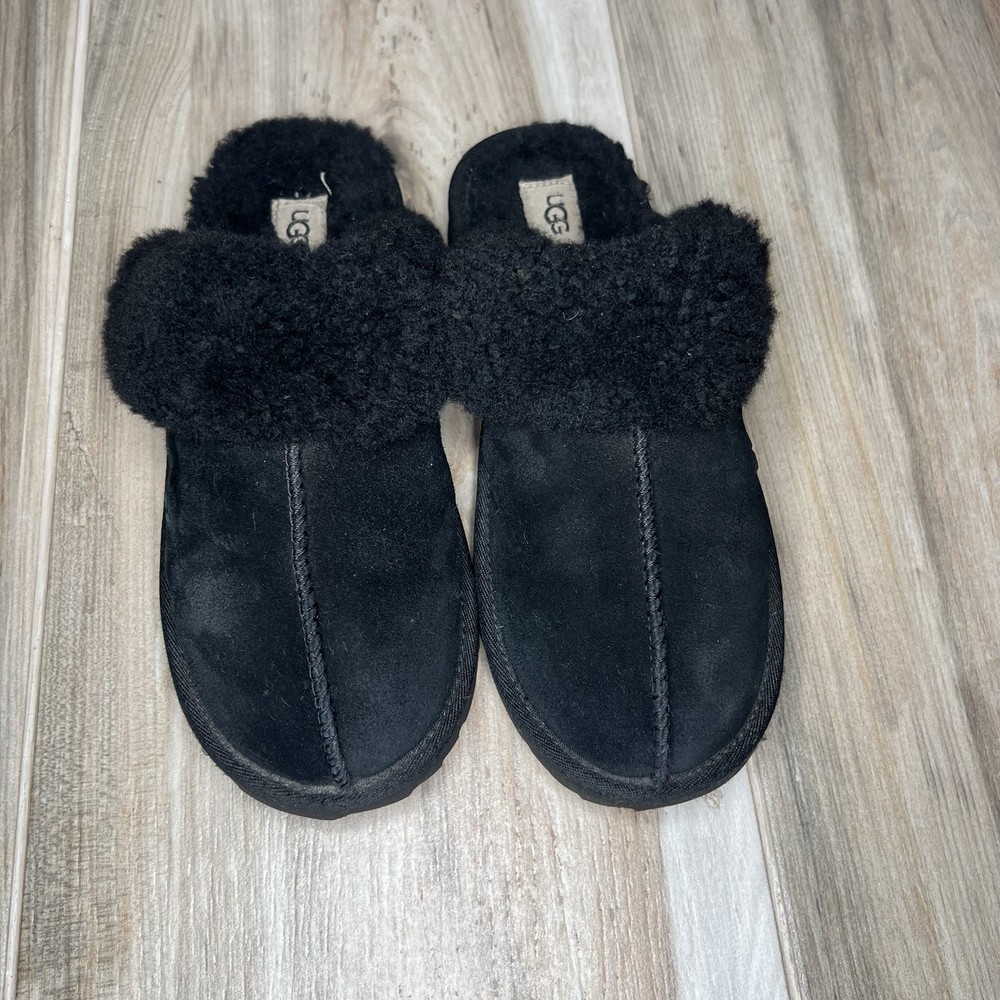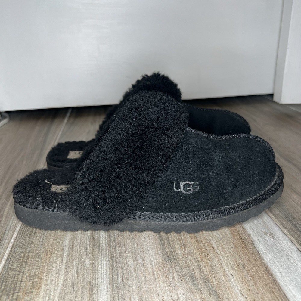 UGG Disquette Black Slippers Womens Sz 6 S/N 1019065K Suede Pre-owned. See Photos for Condition.